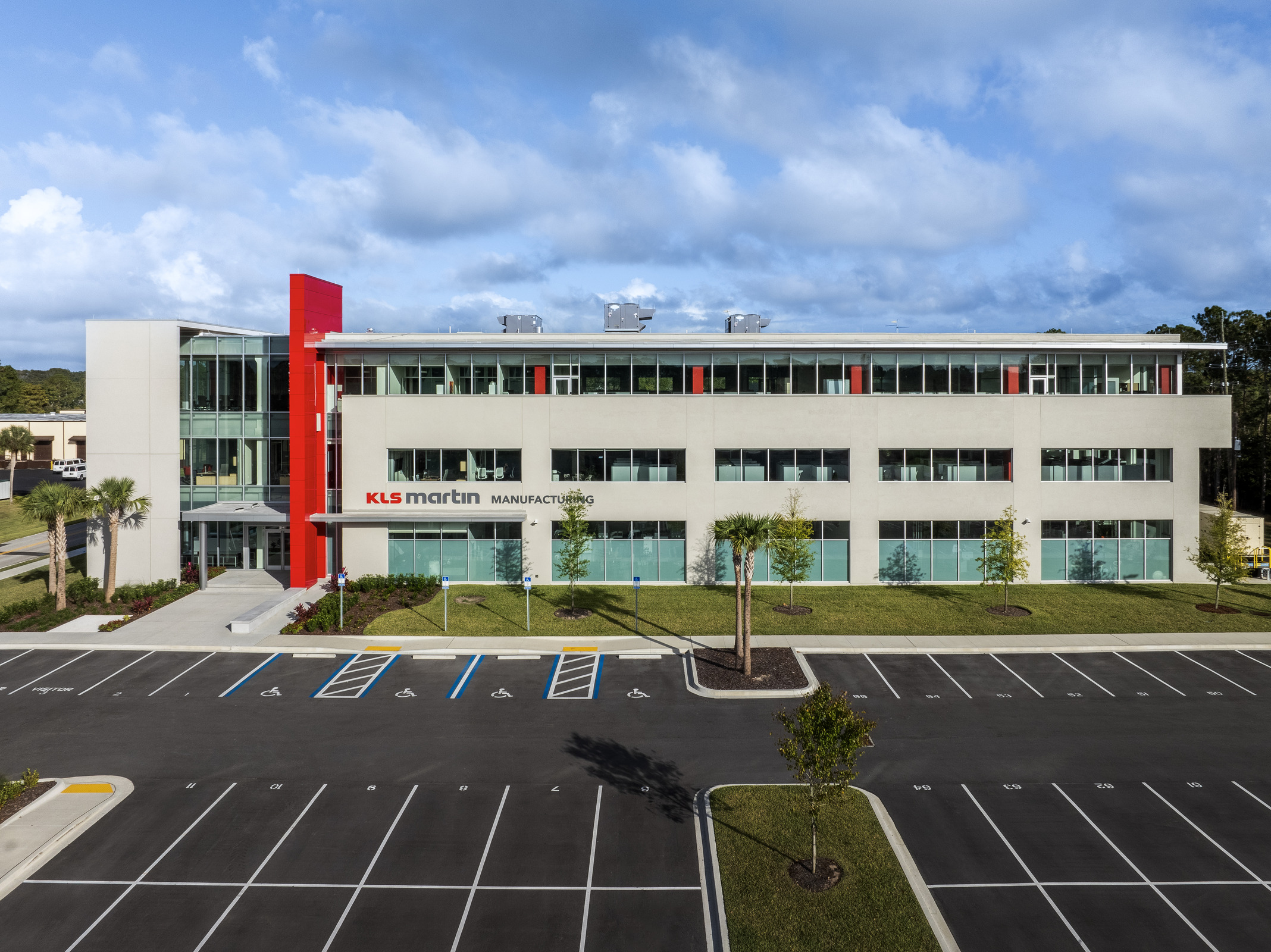 Over the past two decades, KLS Martin Group, a worldwide medical technology firm headquartered in Germany, has experienced significant growth. In the United States, this led to the need for a new, larger facility in Jacksonville, Fla. In the early design phase for the building, the owner evaluated both structural steel and precast concrete as potential building systems. However, ongoing supply-chain disruptions and volatile steel pricing resulting from the COVID-19 pandemic posed significant risks. Ultimately, the flexibility, durability, and architectural quality of precast concrete aligned more closely with the owner’s vision for a high-performance, future-ready facility. Wells, alongside Dasher Hurst Architects and Keister Webb Structural Engineers, collaborated on a modern design for KLS Martin featuring 55,000 ft2 and more than 500 pieces of precast concrete.