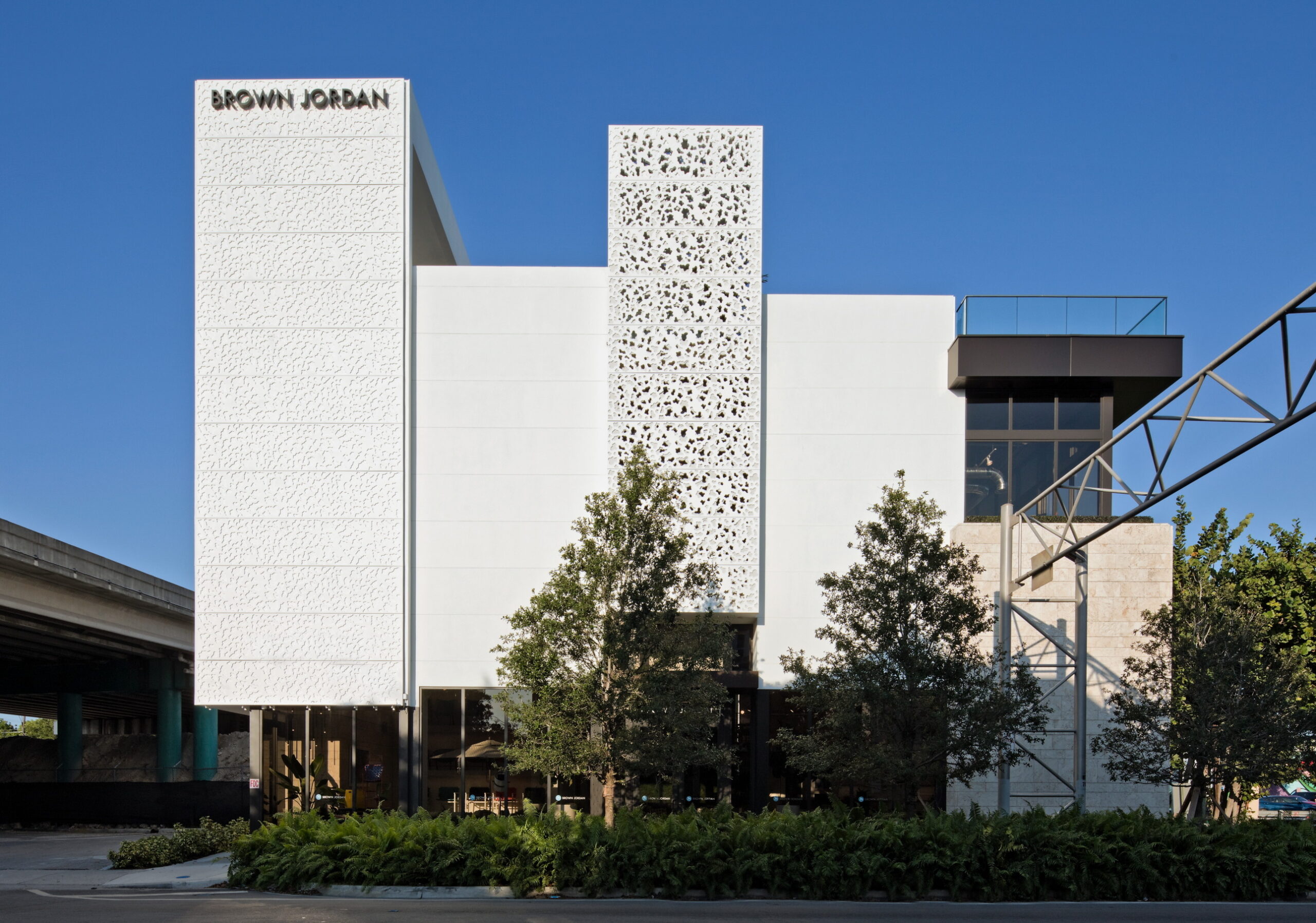 The flagship retail project by Brown Jordan, designed by Touzet Studio, draws inspiration from the Dade County pine forest and coral-rock bluffs that once covered the site, of which less than 2% remains today. The building’s design features volumes that seem to emerge from the southern edge of the site that is filled with greenery and natural landscape elements.