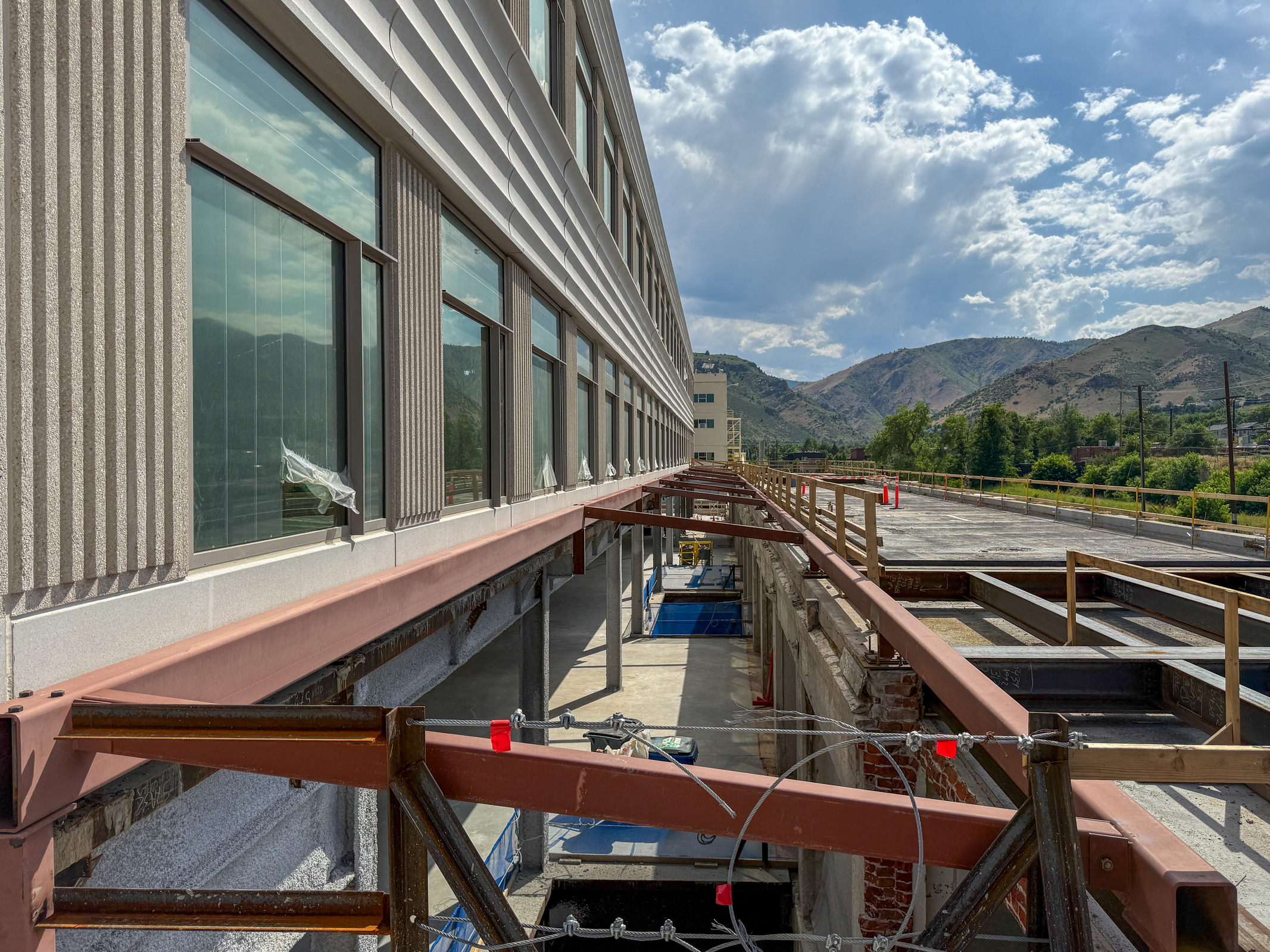 In addition to the new construction, the structure integrates elements of the site’s historic past. Some of the original masonry walls on the east side of the building are being restored, preserving the legacy of the industrial heritage while blending seamlessly with the modern design. The result is a beautifully crafted, sustainable headquarters that sets the tone for the rest of the district.