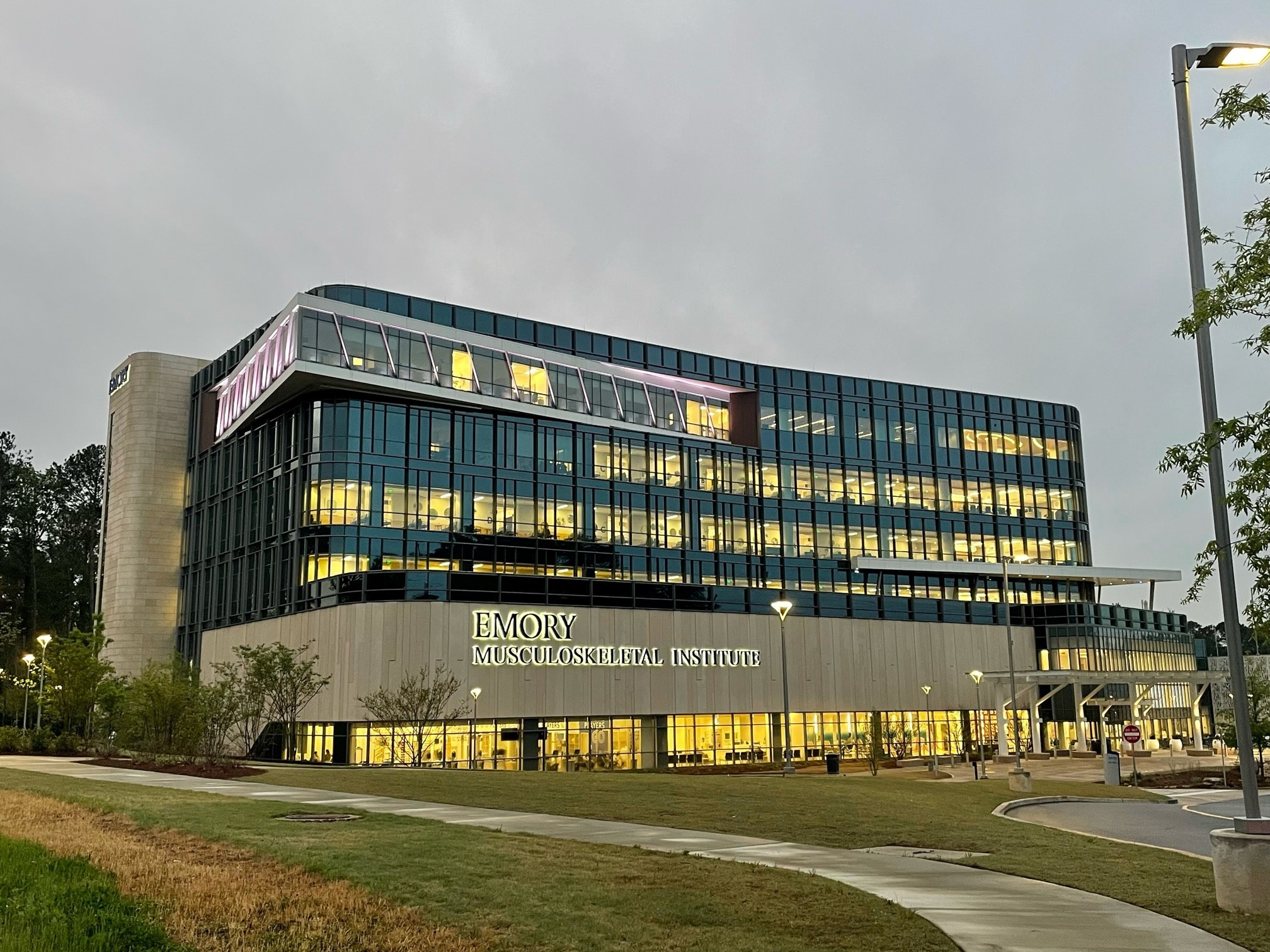 At 180,000 sq ft across six stories, Emory Healthcare’s Musculoskeletal Institute was designed to embody the restoration of movement through architecture. Located in Atlanta within Emory’s Executive Park Innovation District, the facility supports the diagnosis, treatment, and repair of bones, joints, and connective tissue while advancing Emory’s mission to integrate care, education, and research. Steven Rodgers, Senior Construction Administrator at HKS, explains the guiding principle was “to use building form to communicate the building’s purpose,” shaping a patient- and family-centered space organized to optimize care delivery, efficiency, and flow. Research and education spaces are elevated to the top floor, expressed through a distinctive projecting form that signals innovation and discovery.