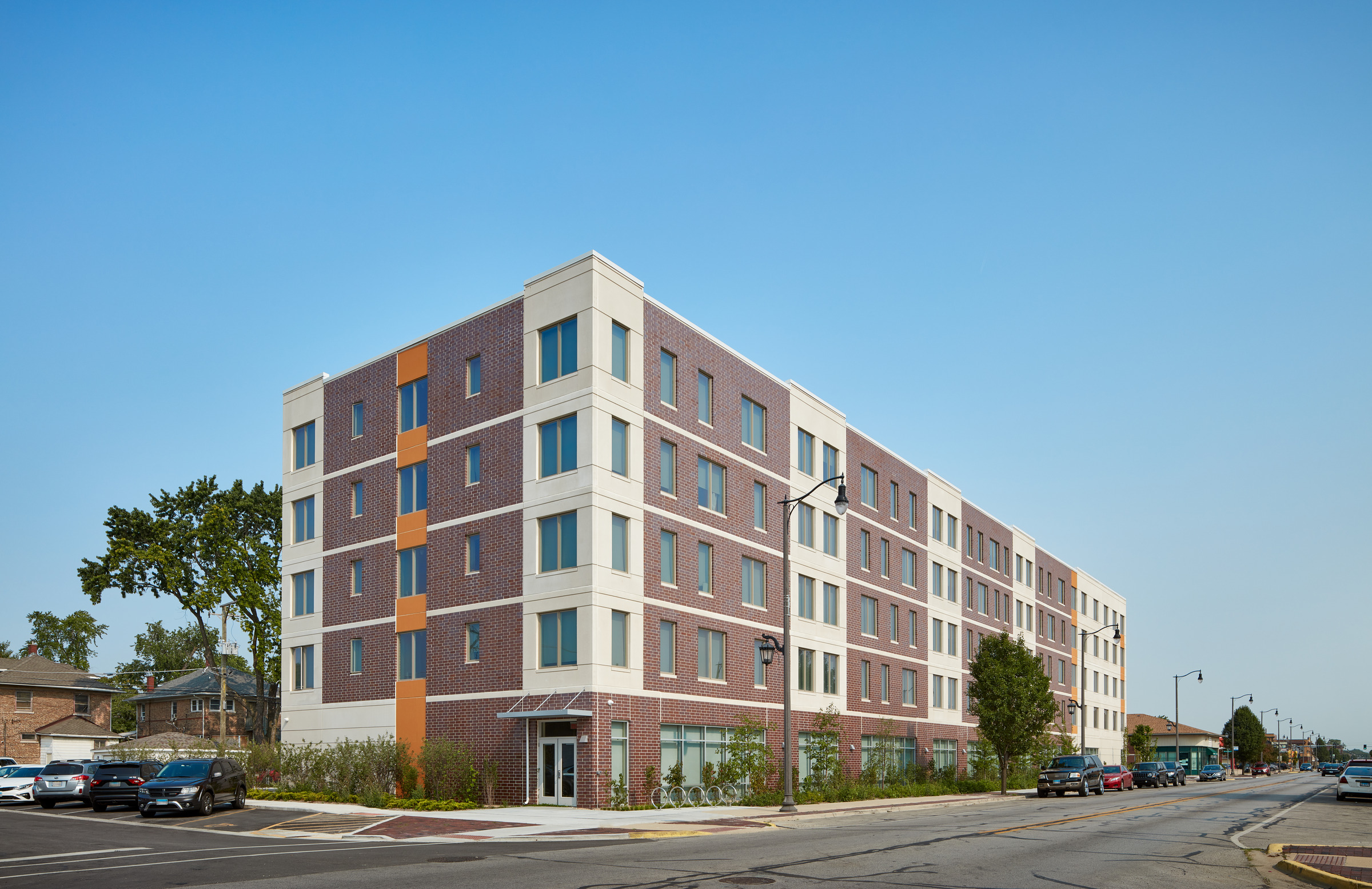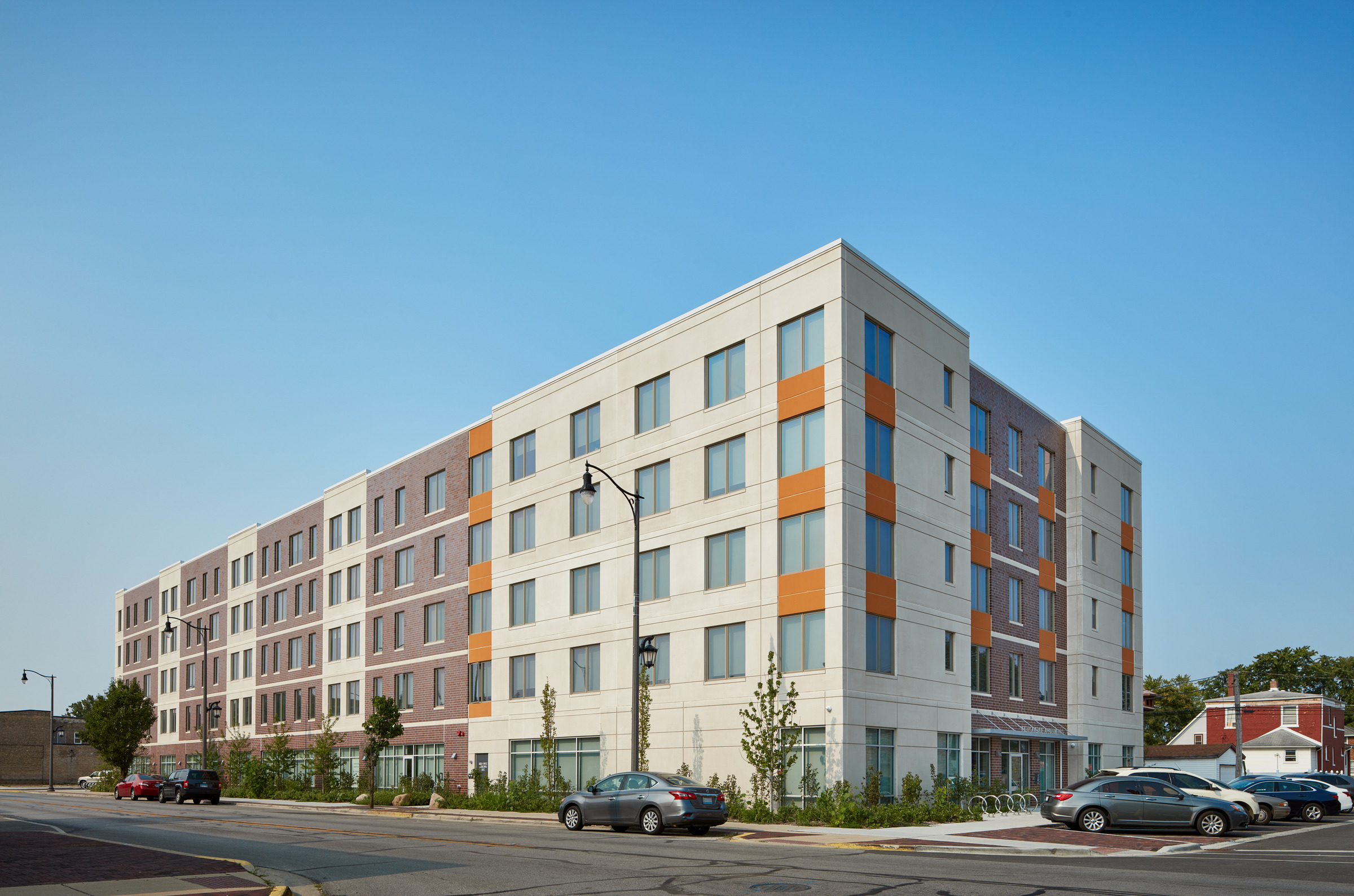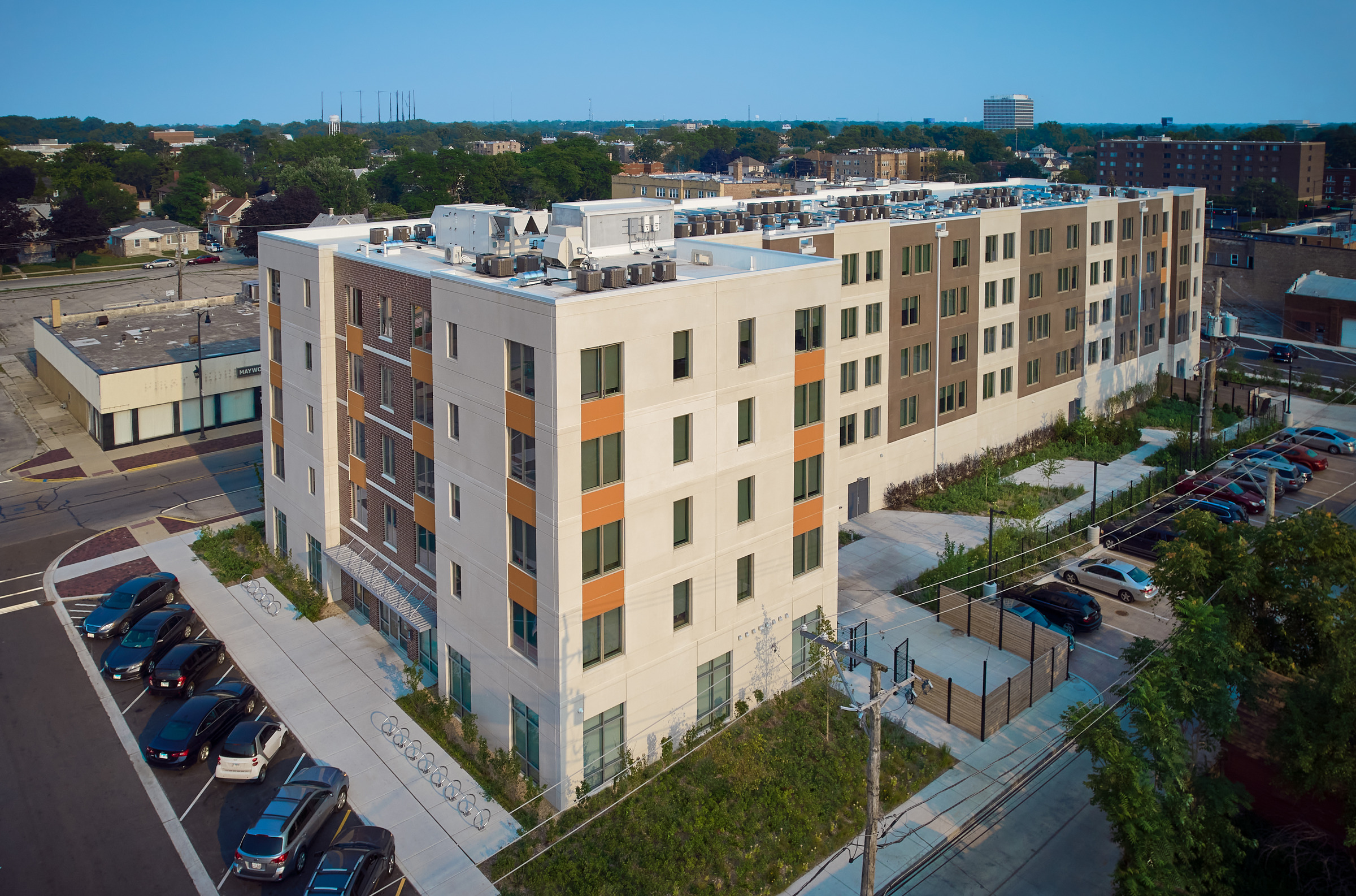 Transforming a vacant 33,000 sq ft lot into a brilliant, mid-rise, affordable housing development, required a team of experts, thoughtful planning and a community investment. The Interfaith Housing Development Corporation (IHDC) purchased the lot from the Village of Maywood, Illinois, to build an apartment complex to support families that are substantially below the area medium income, homeless veterans or residents with disabilities. The project was on a fast-tracked schedule to relieve pressure on the local homeless shelters.