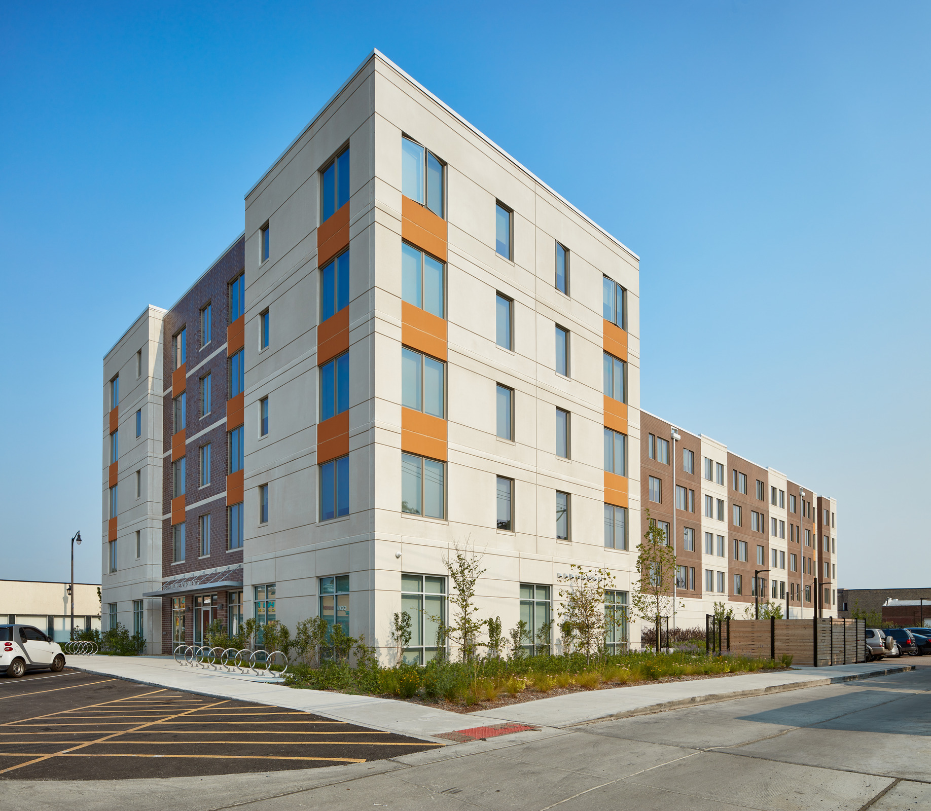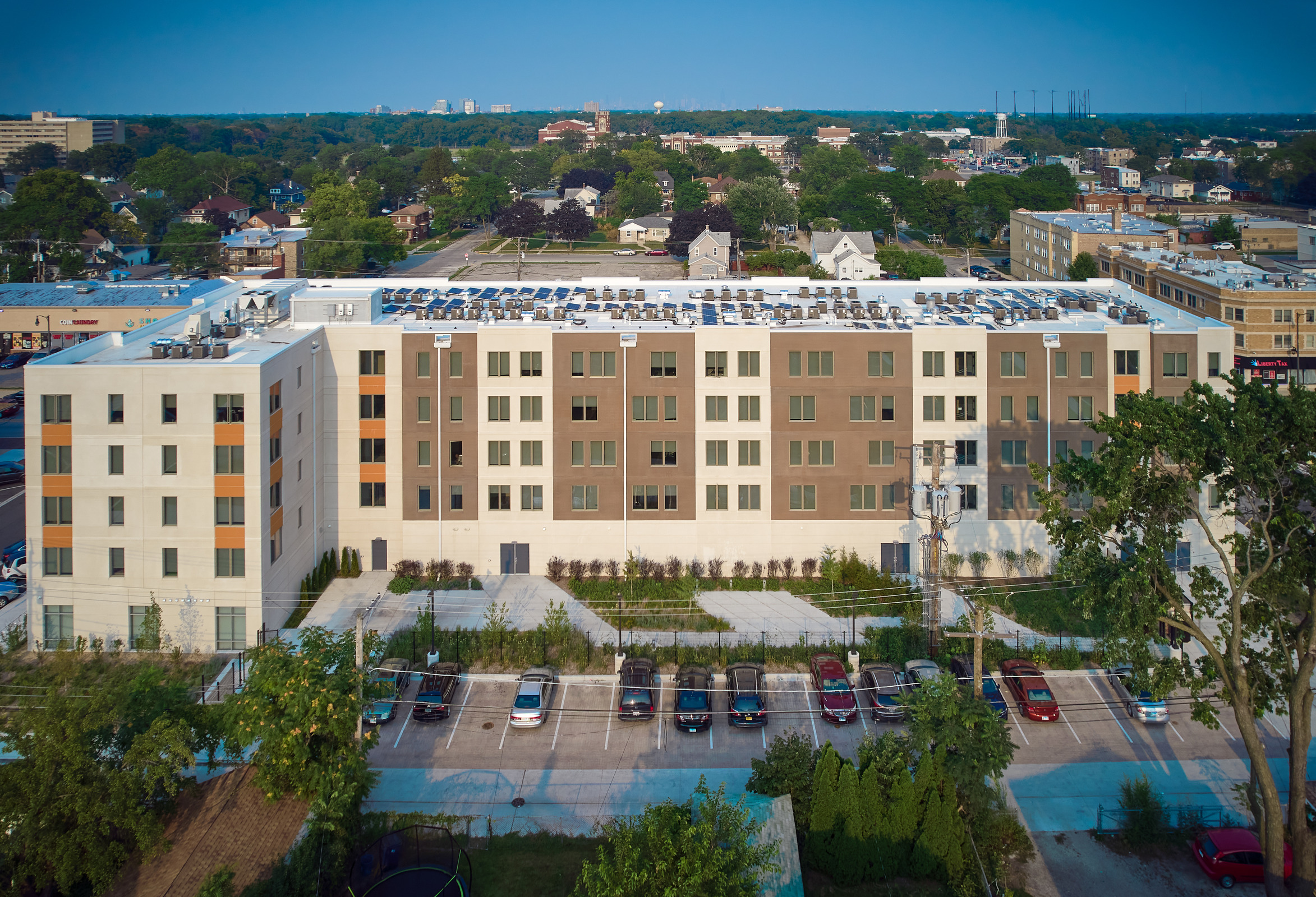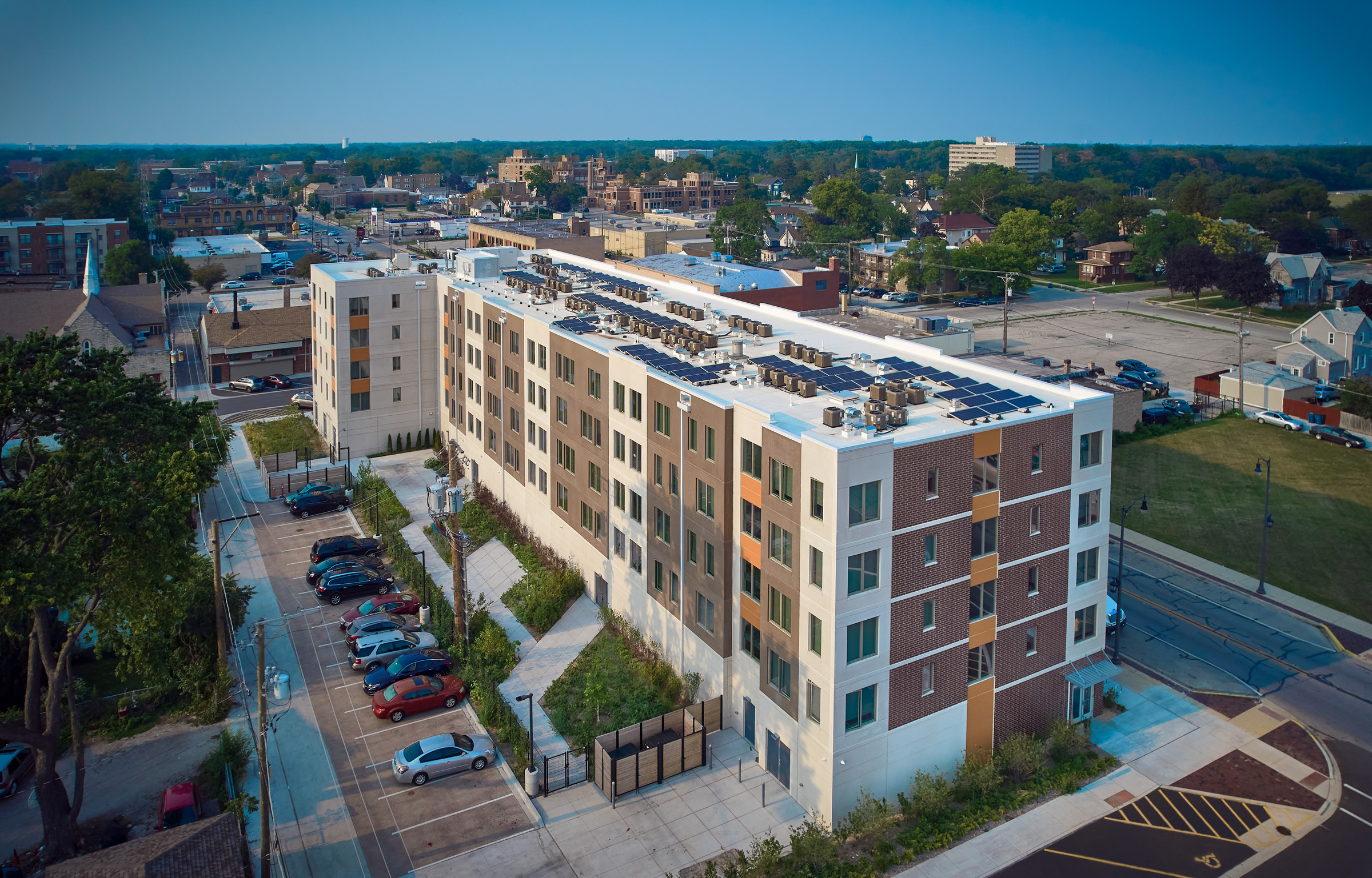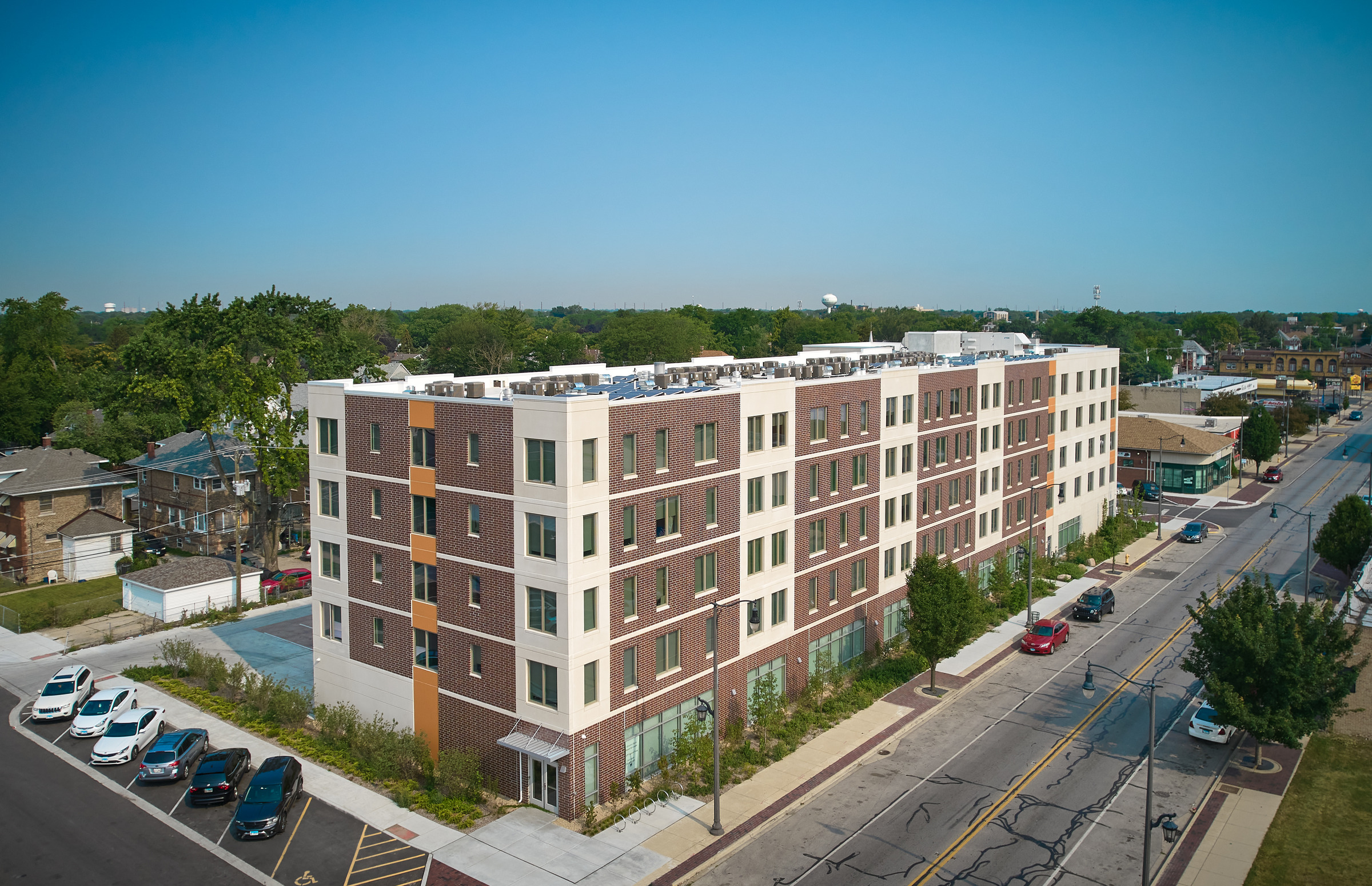 Transforming a vacant 33,000 sq ft lot into a brilliant, mid-rise, affordable housing development, required a team of experts, thoughtful planning and a community investment. The Interfaith Housing Development Corporation (IHDC) purchased the lot from the Village of Maywood, Illinois, to build an apartment complex to support families that are substantially below the area medium income, homeless veterans or residents with disabilities. The project was on a fast-tracked schedule to relieve pressure on the local homeless shelters.