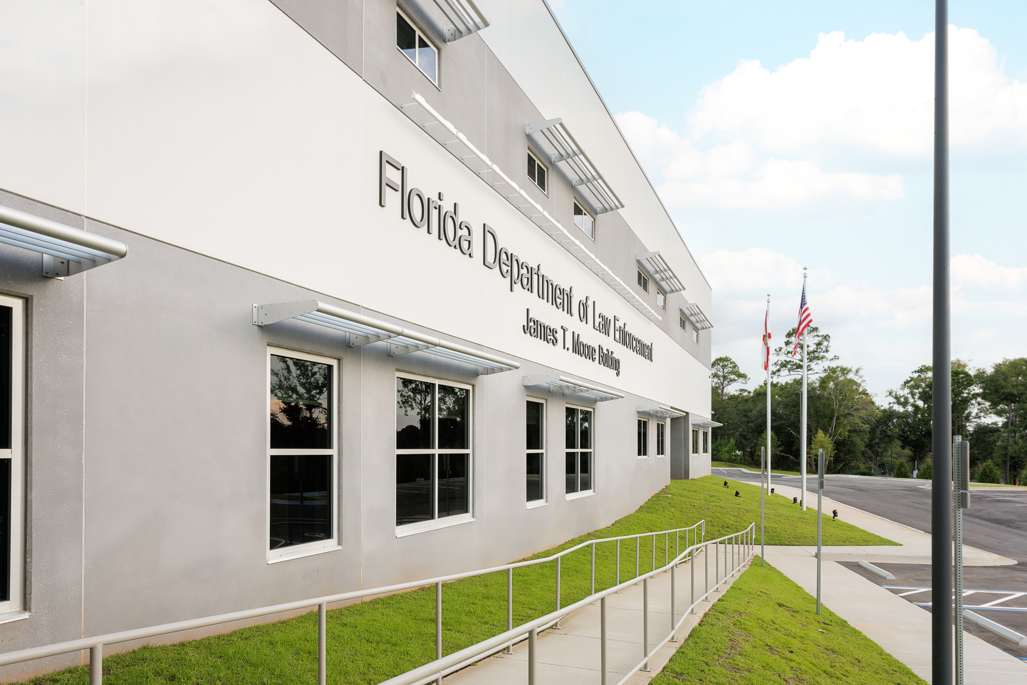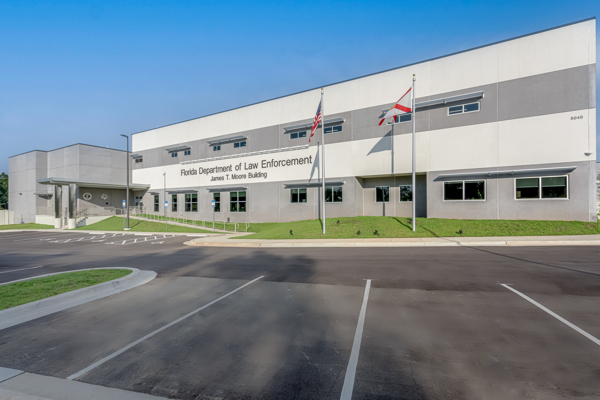 The James T. Moore Building, home to the Florida Department of Law Enforcement Pensacola Regional Operations Center, replaces a century-old facility that was severely damaged by Hurricane Ivan. Located in Pensacola, Fla., the two-story, 85,017 sq ft operations center was designed to support secure, resilient, and highly specialized functions, including forensic laboratories, ballistic-rated public entry spaces, secured vault and file rooms, training areas, and a high-bay multi-vehicle garage.