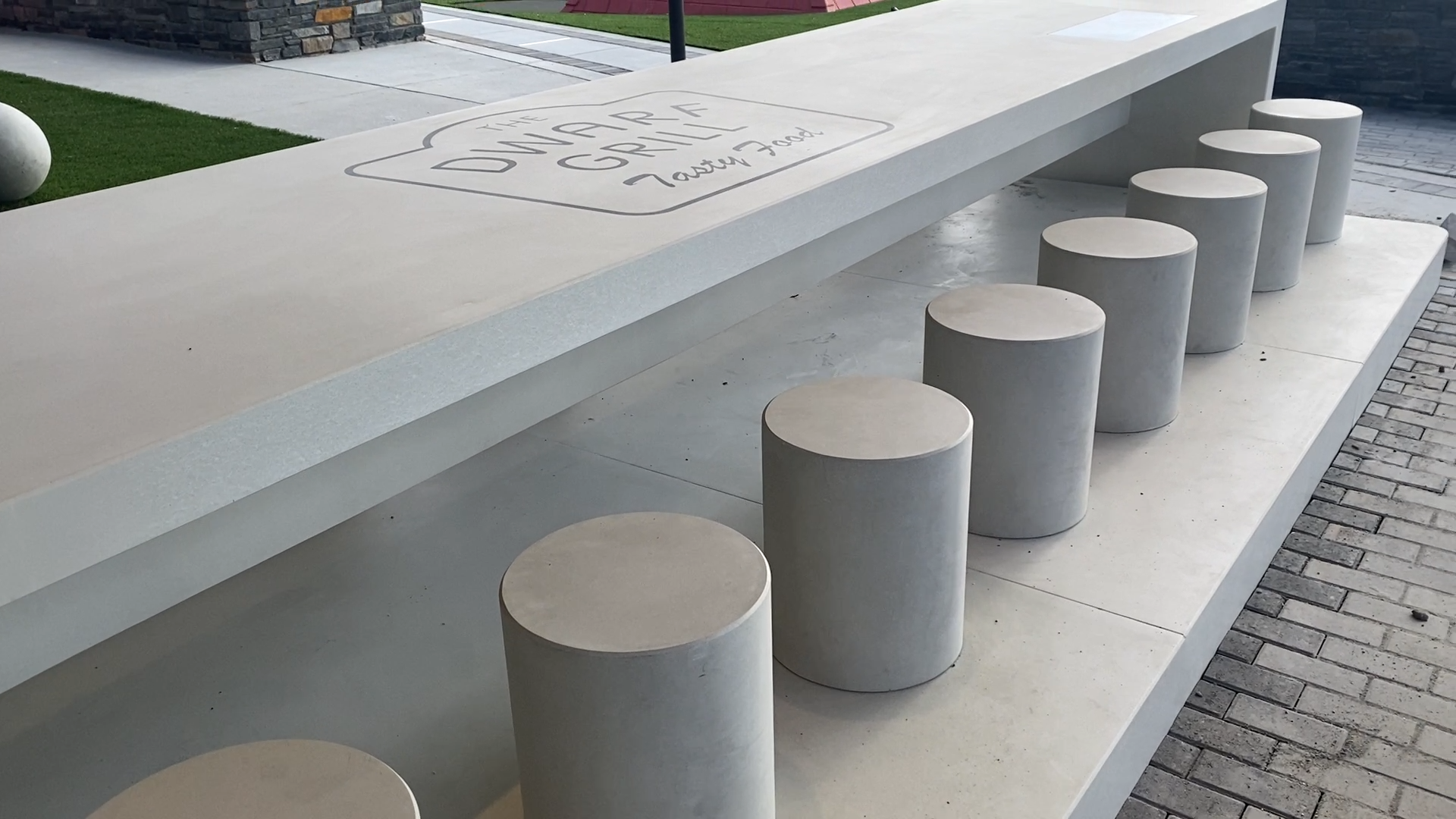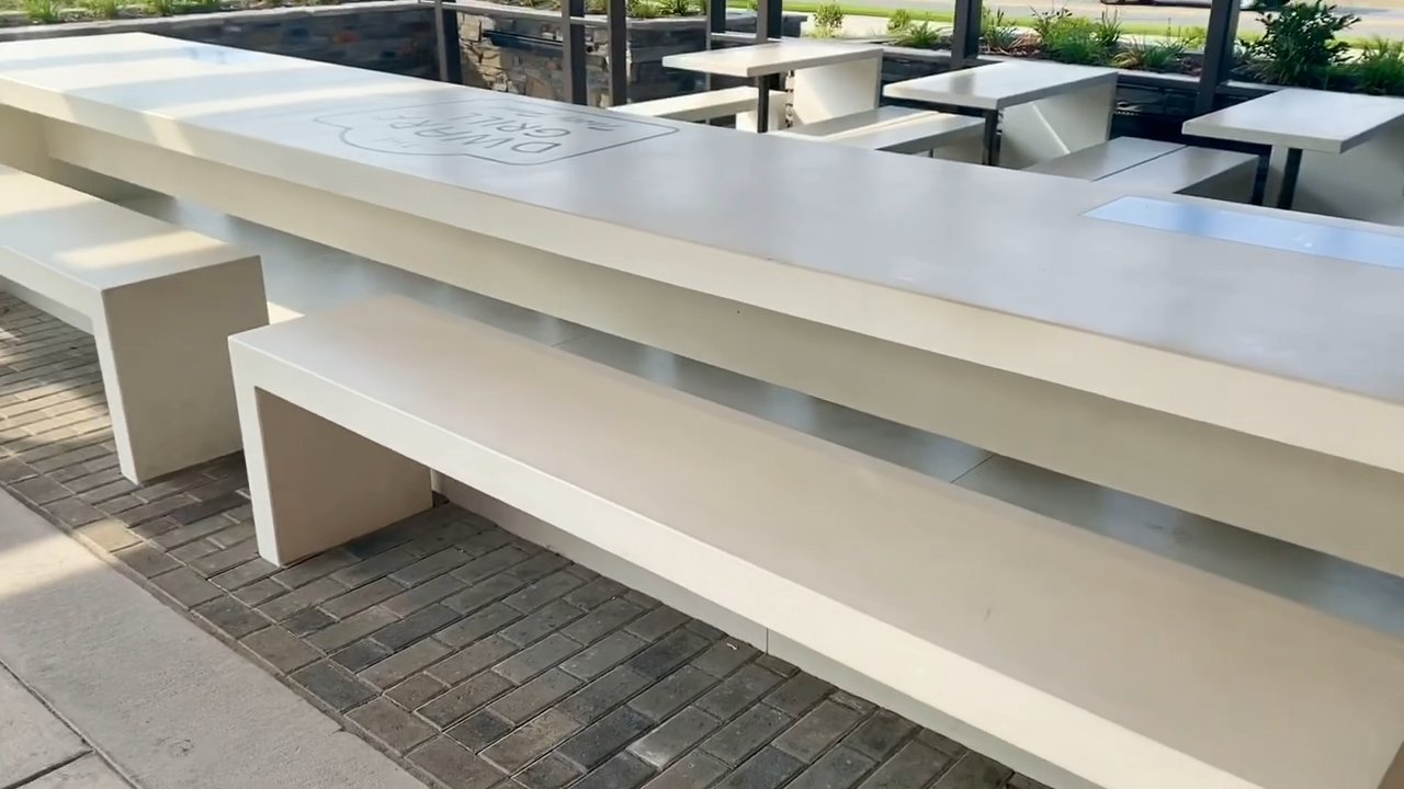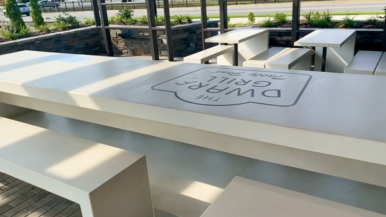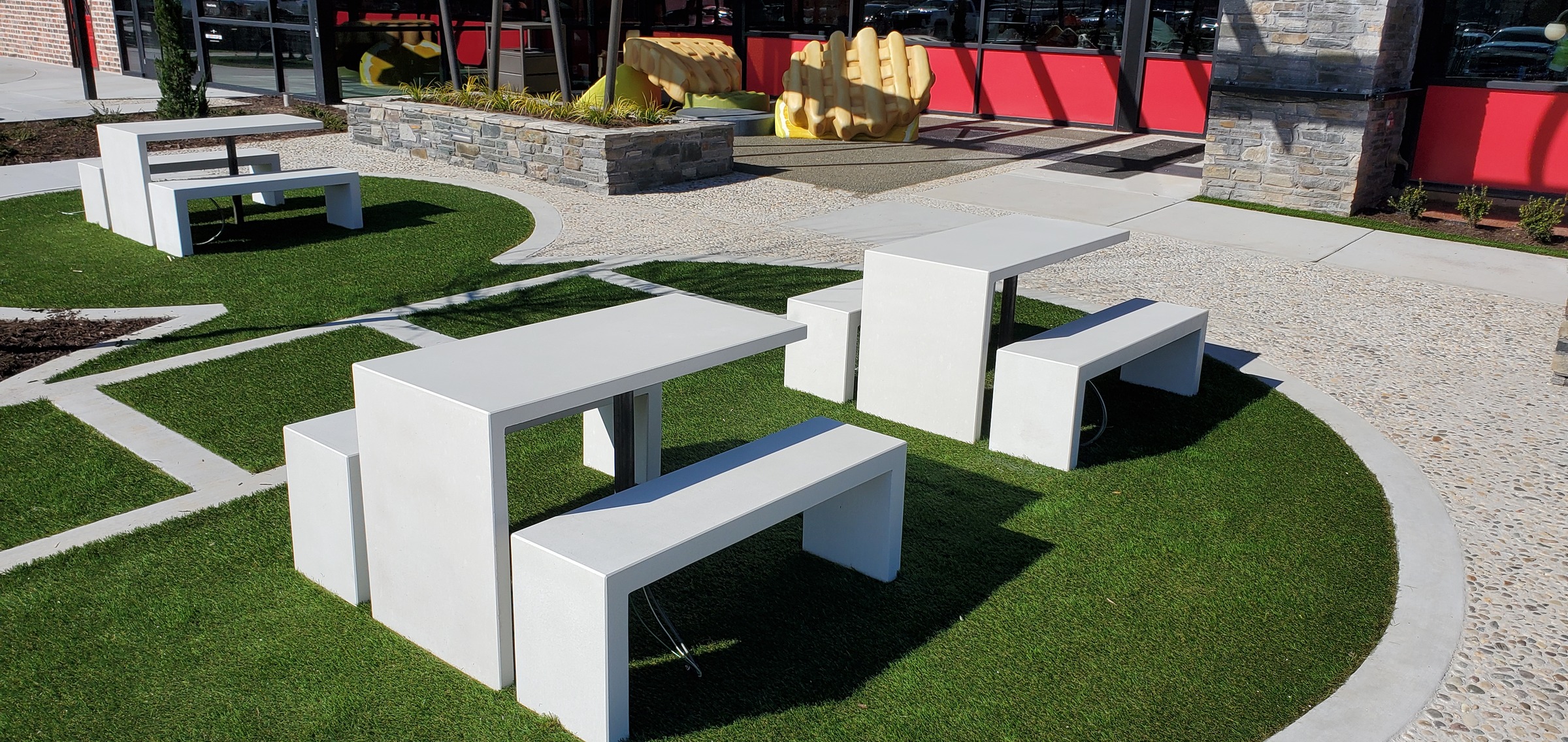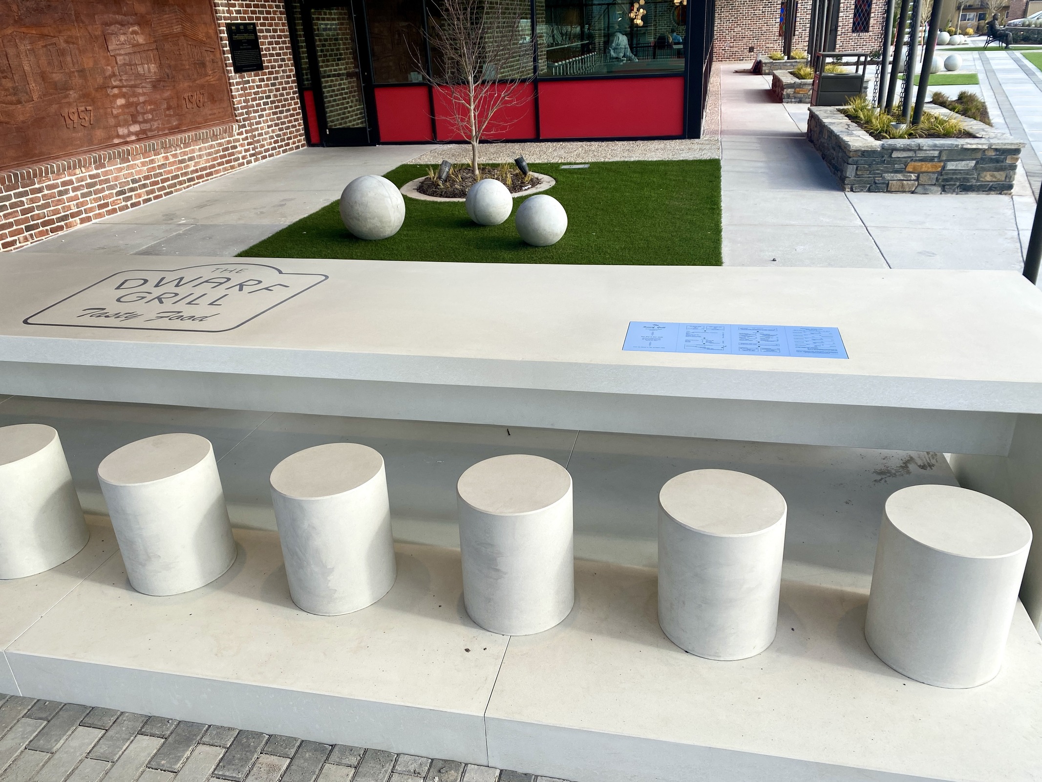 As part of the renovation and expansion of the original Chick-fil-A Dwarf House, the birthplace of the iconic chicken sandwich, Wells created a series of custom outdoor furnishings in DEX high performance concrete. The newly designed flagship, located in Hapeville, GA, blends legacy and innovation across its interiors and outdoor spaces.