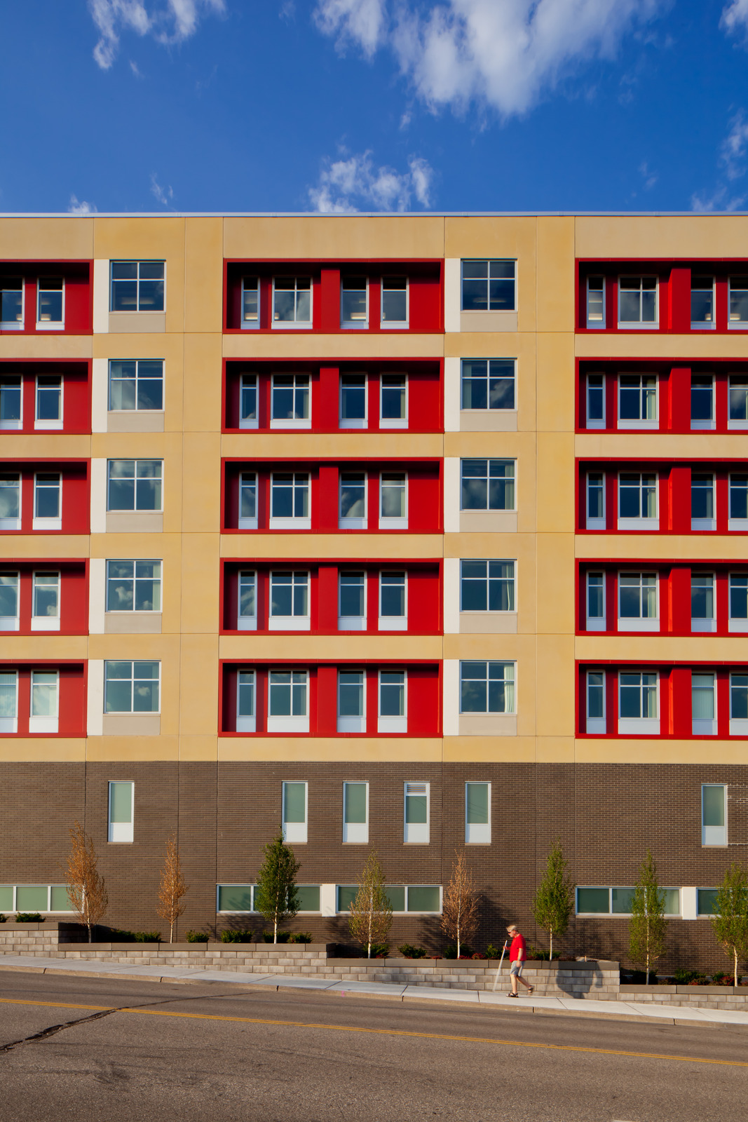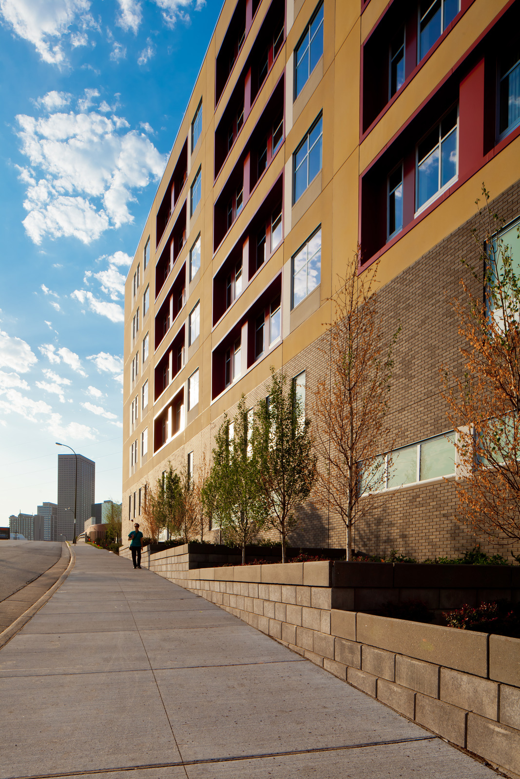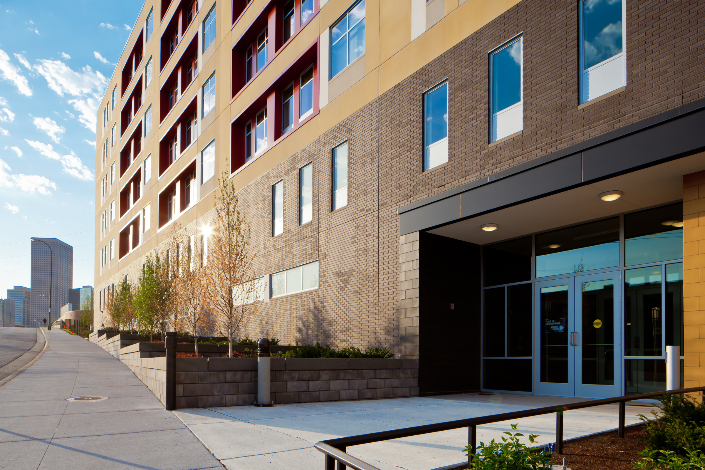 The Higher Ground homeless shelter brings both structure and beauty to the Minneapolis skyline, providing the groundwork for a community that everyone can be proud of. The first of its kind in Minnesota, Higher Ground gives residents an opportunity to move out of homelessness by combining permanent housing and emergency shelter in one building. Focusing on upholding people’s dignity and working with them to become as self-sufficient as possible, Higher Ground also provides them access to resources, including job skills training, mental health support services, and on-site direct health support.