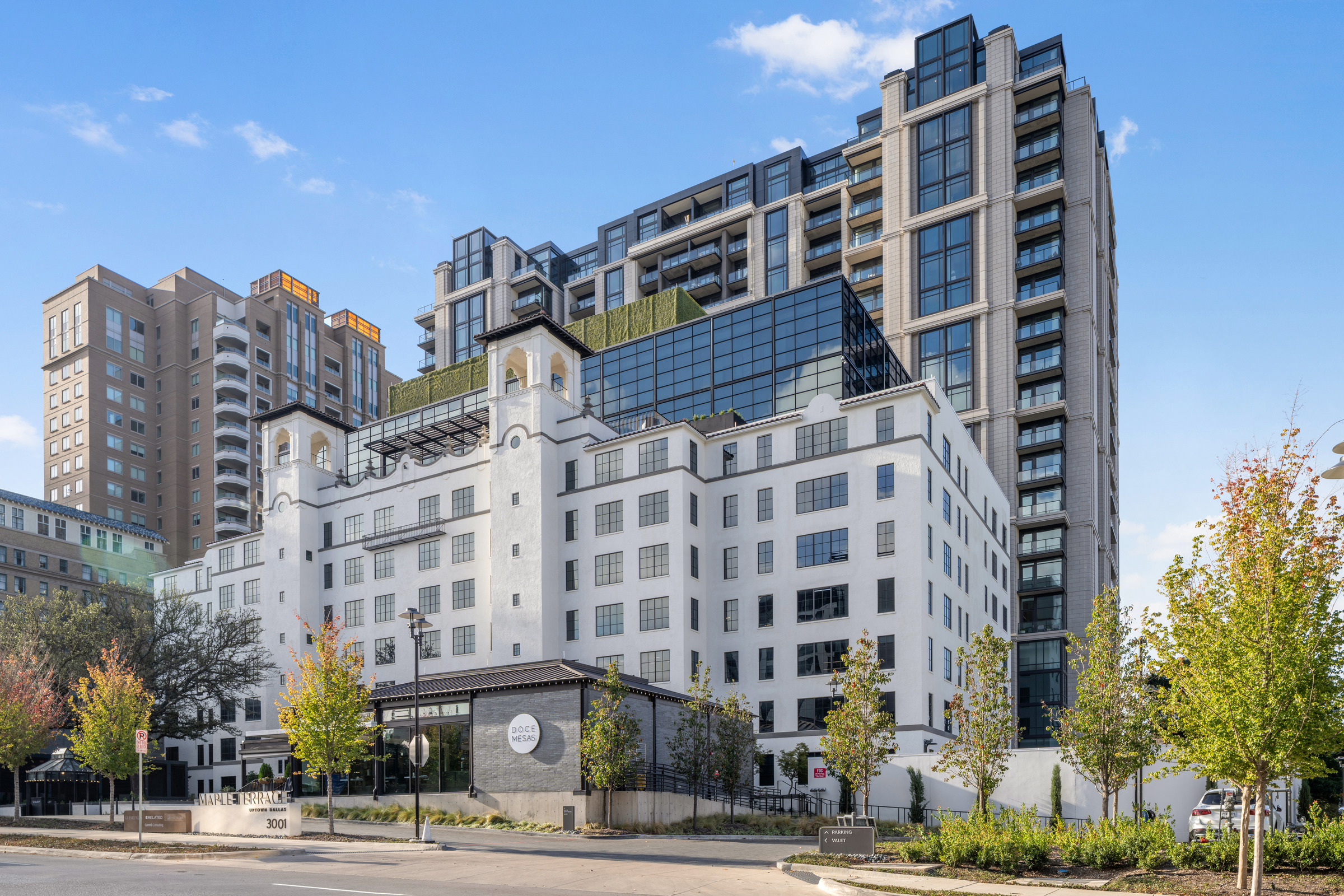 Rising 22 stories in uptown Dallas, Maple Terrace Residences pairs a contemporary mixed-use tower with the careful preservation of the historic Maple Terrace building, originally designed by Alfred C. Bossom in the late 1920s. The project required a thoughtful balance — honoring a landmark limestone facade while introducing a modern residential tower that feels authentic to Dallas’s architectural character. Wells collaborated closely with GFF Architects and the project team to help realize a facade solution that respects the site’s legacy while meeting modern expectations for performance, durability, and constructability.