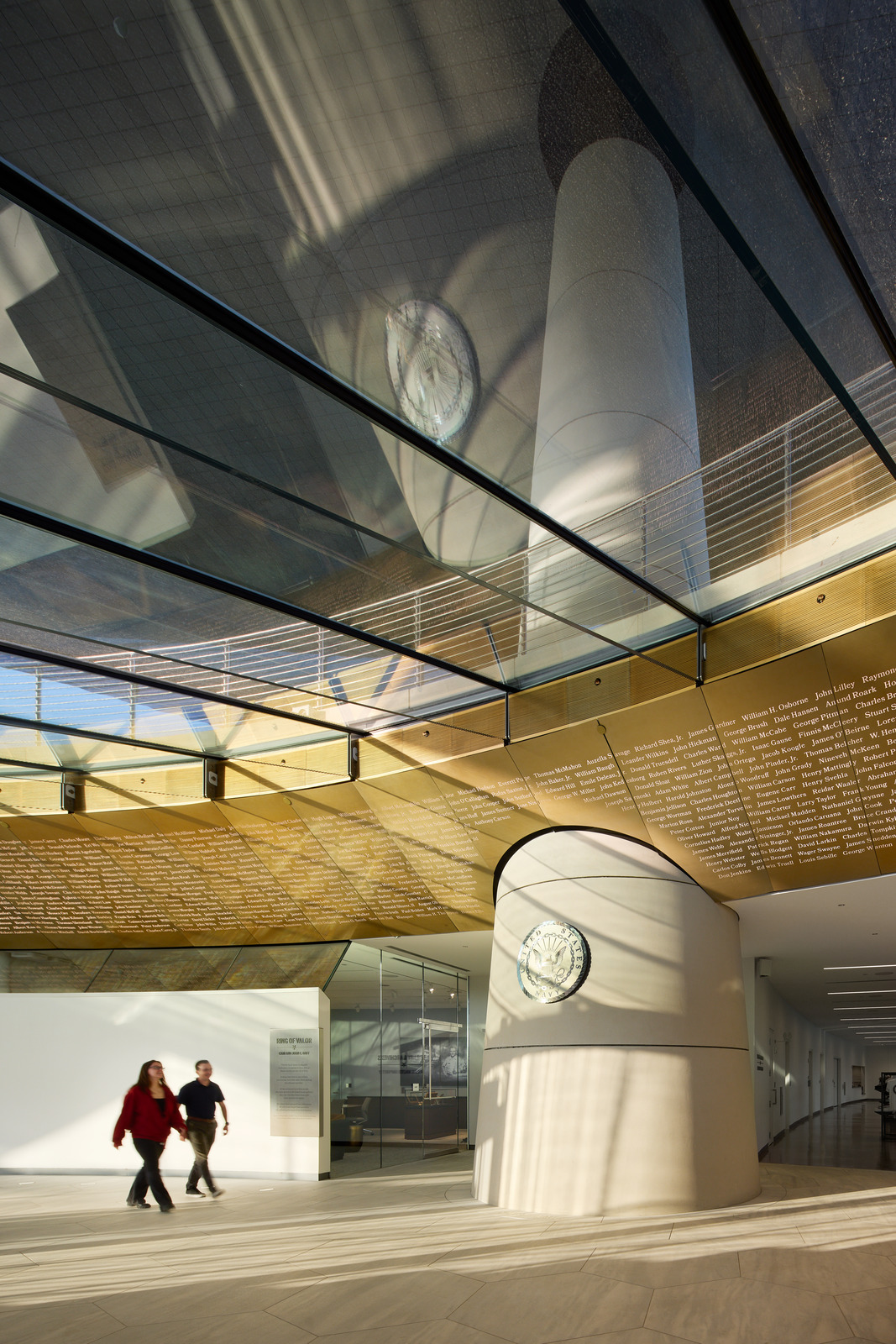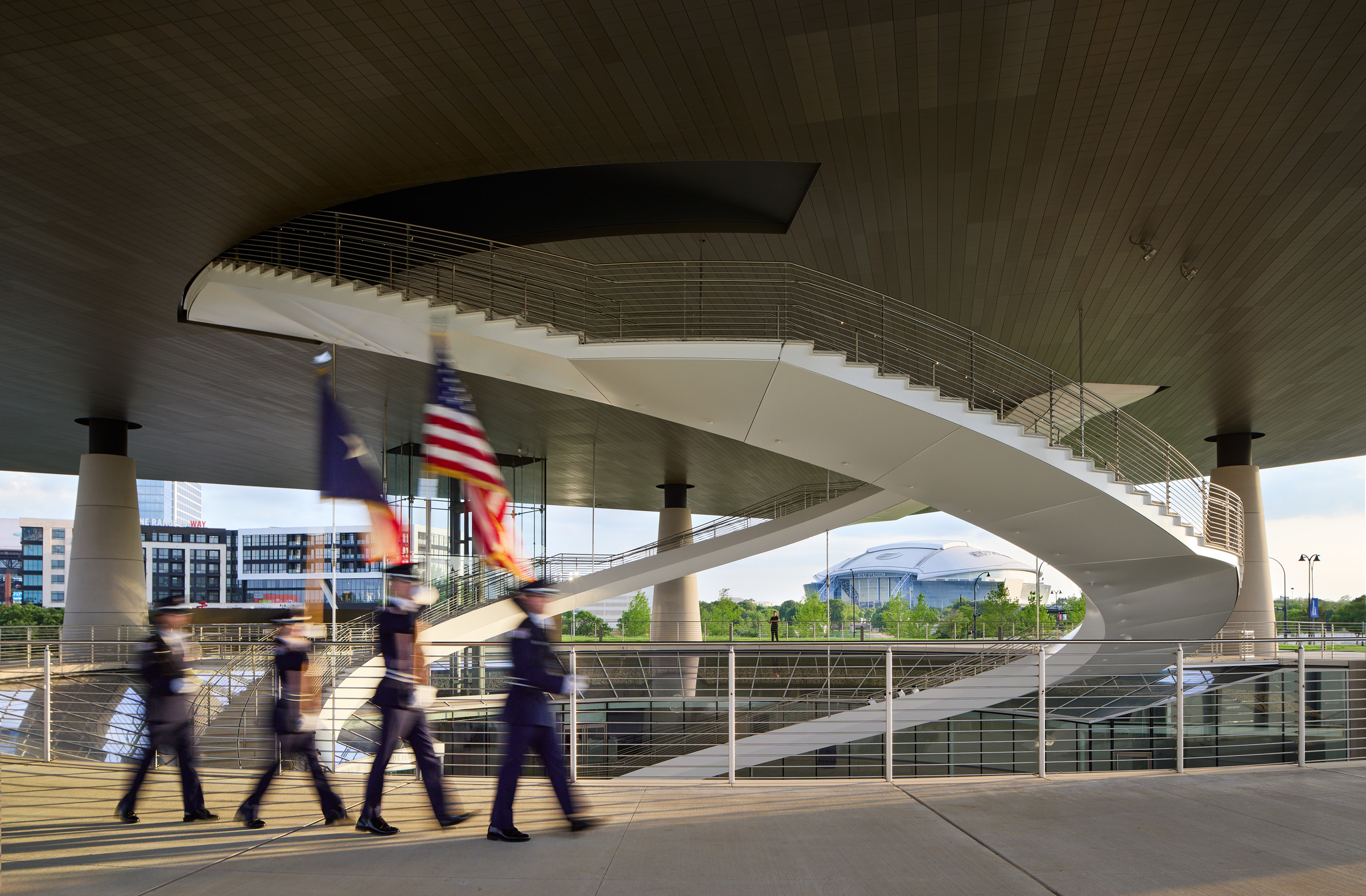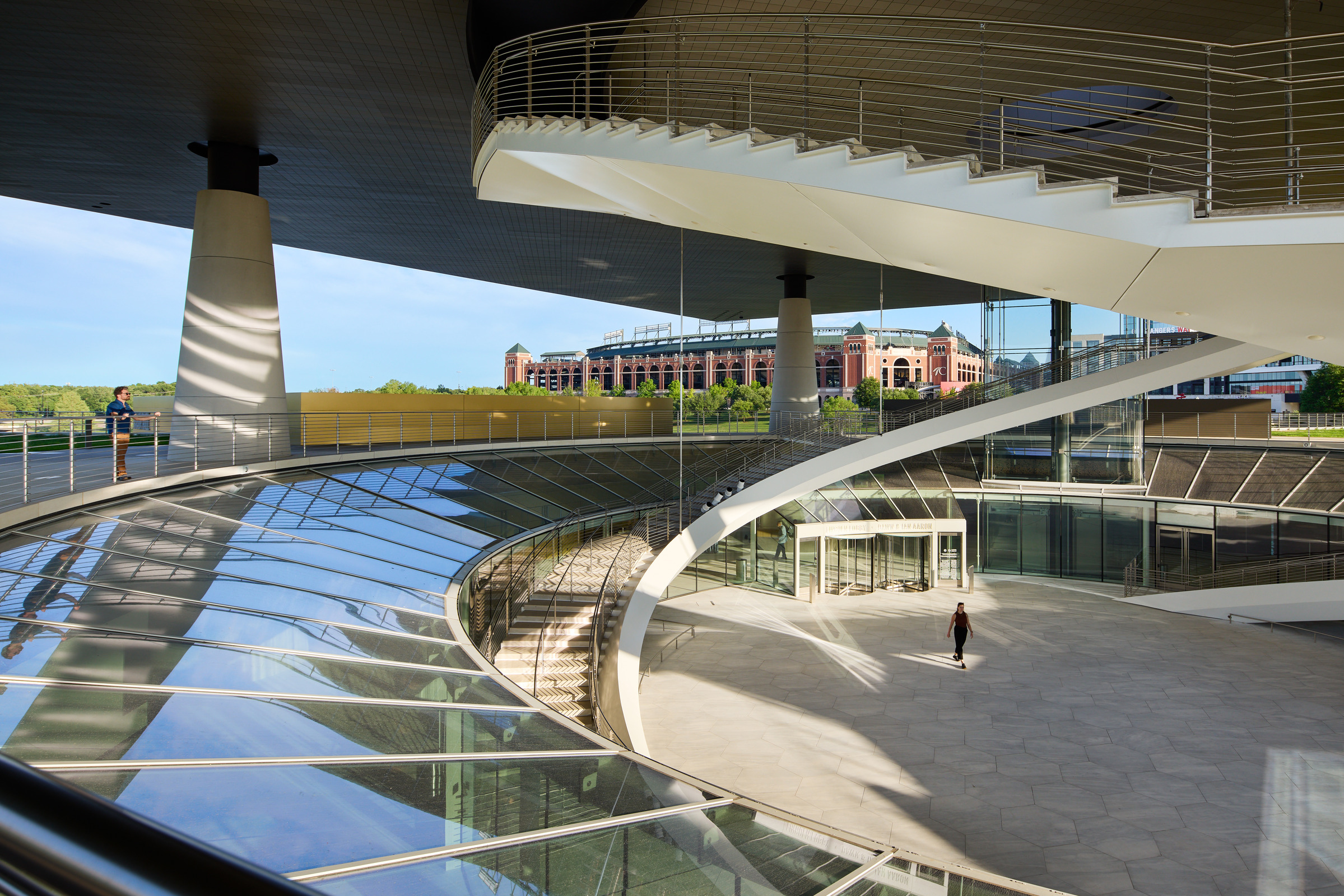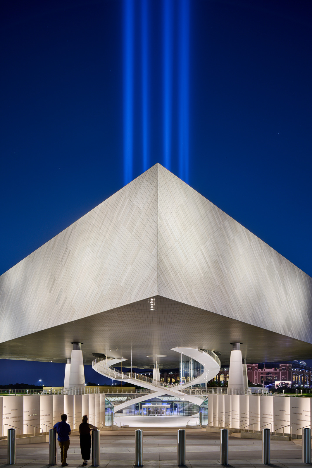 Field execution demanded the same rigor. Using a 330-ton crane, crews set each ring to survey control, with Total Stations and data collectors verifying alignment. Tapered shims accommodated the slope at the ends, closing joints and preserving the clean, conical geometry from base to crown. Utilities were preassembled, then routed vertically through the columns to minimize disruption. Discreet 2- x 3-ft. access doors at each column base provide entry for maintenance.