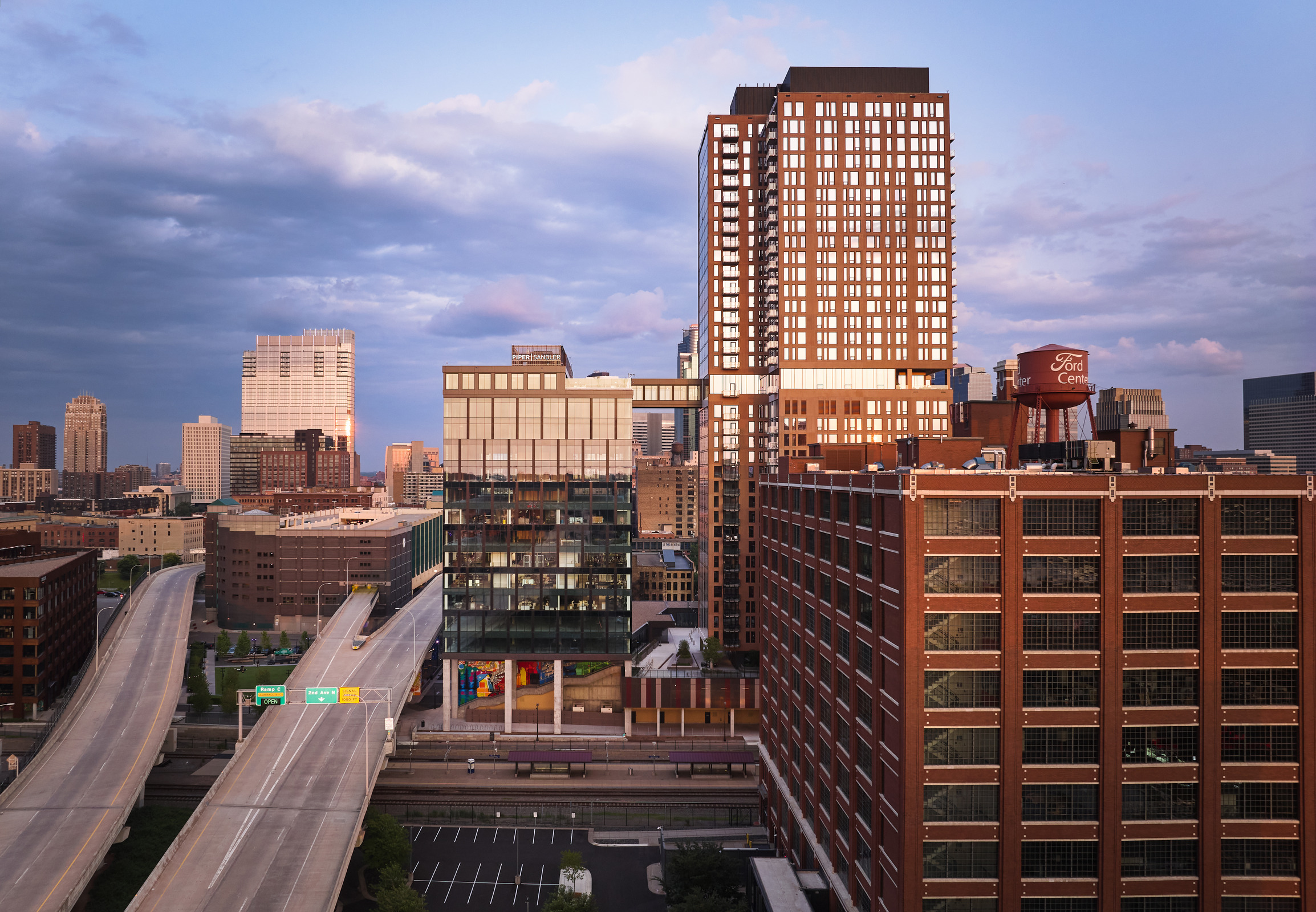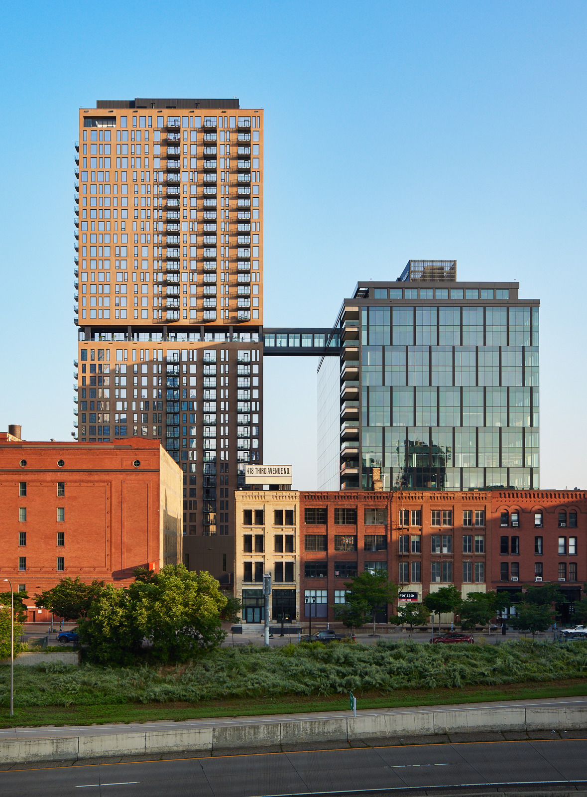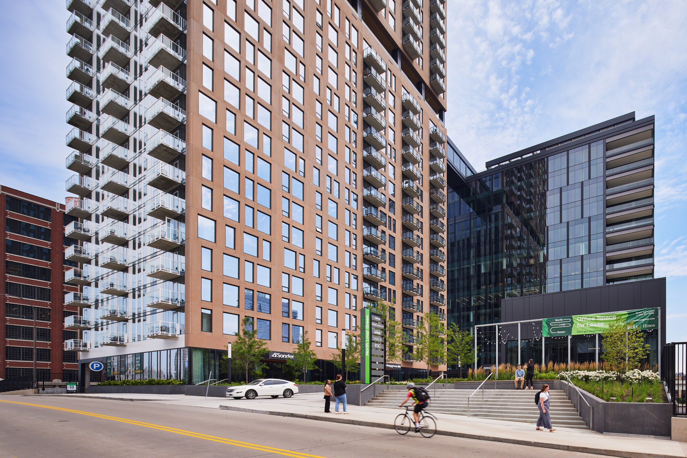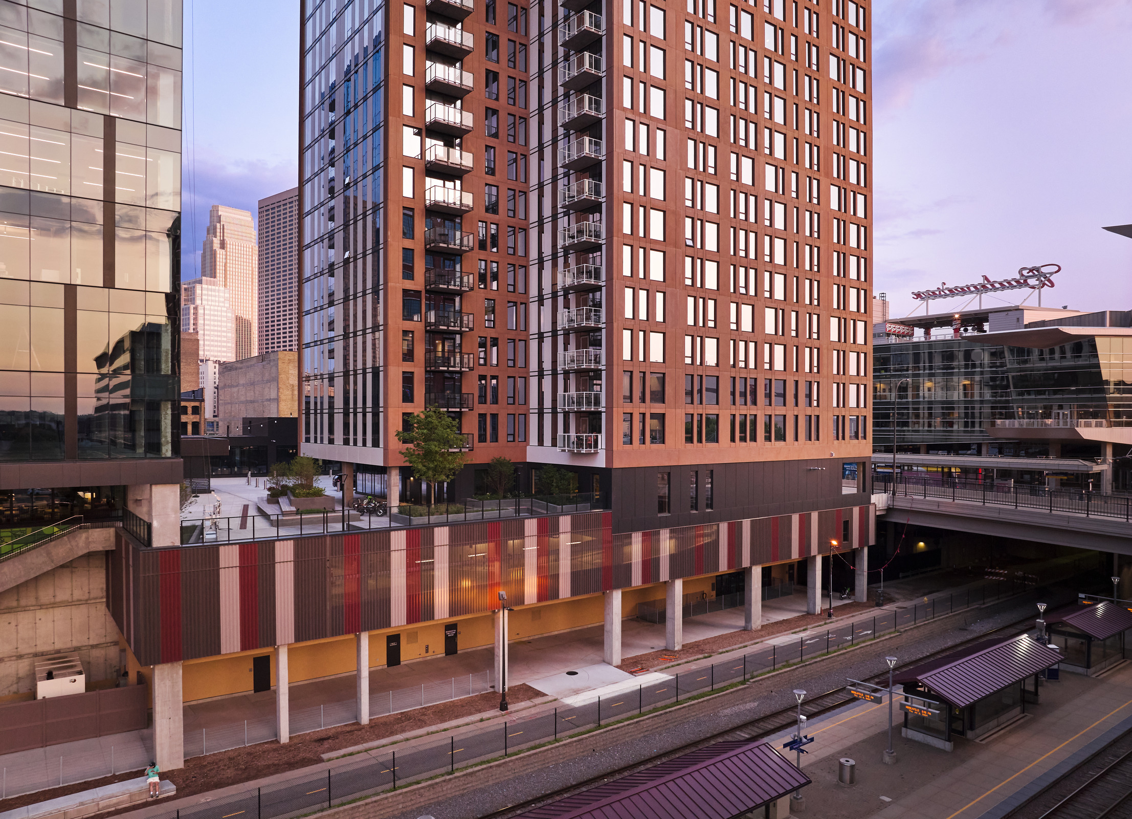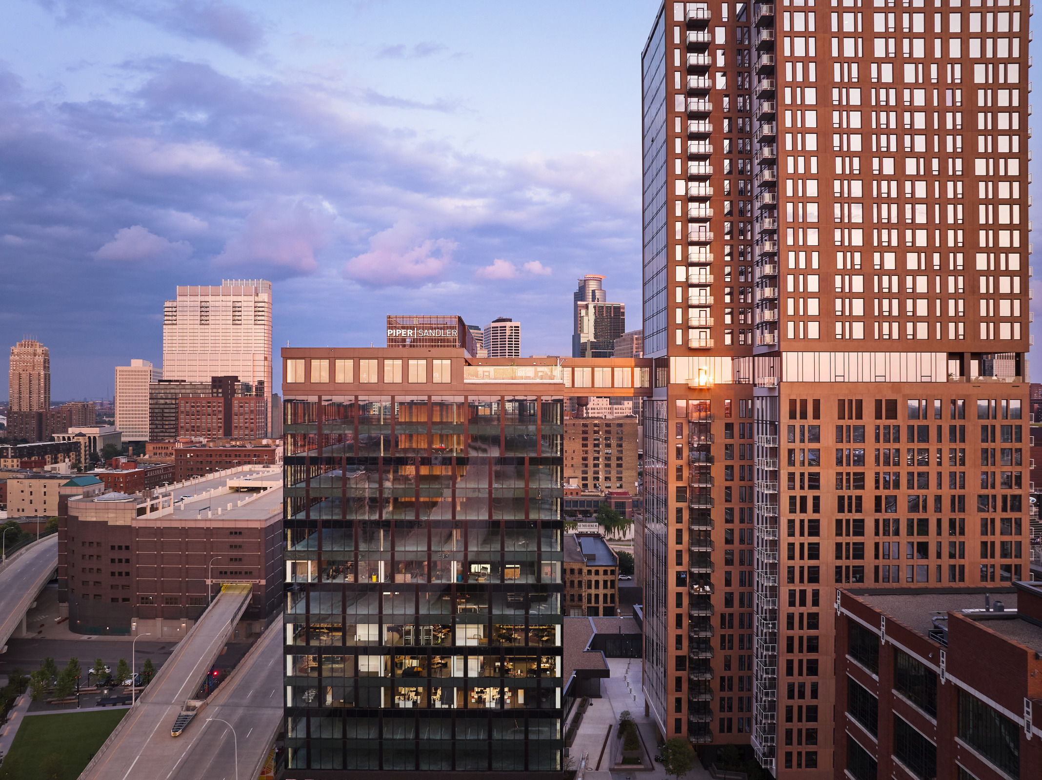 North Loop Green in Minneapolis, MN, is a 34-story multi-use building with 354 luxury rental units, 96 short-term rental units, 17,000 sq ft of ground-level retail and dining space, 14 stories of office space, underground parking, and a one-acre park – all directly across the street from Target Field. This structure adds to the already bustling area of North Loop, providing the neighborhood with a variety of desired urban luxury amenities and shared experiences.
