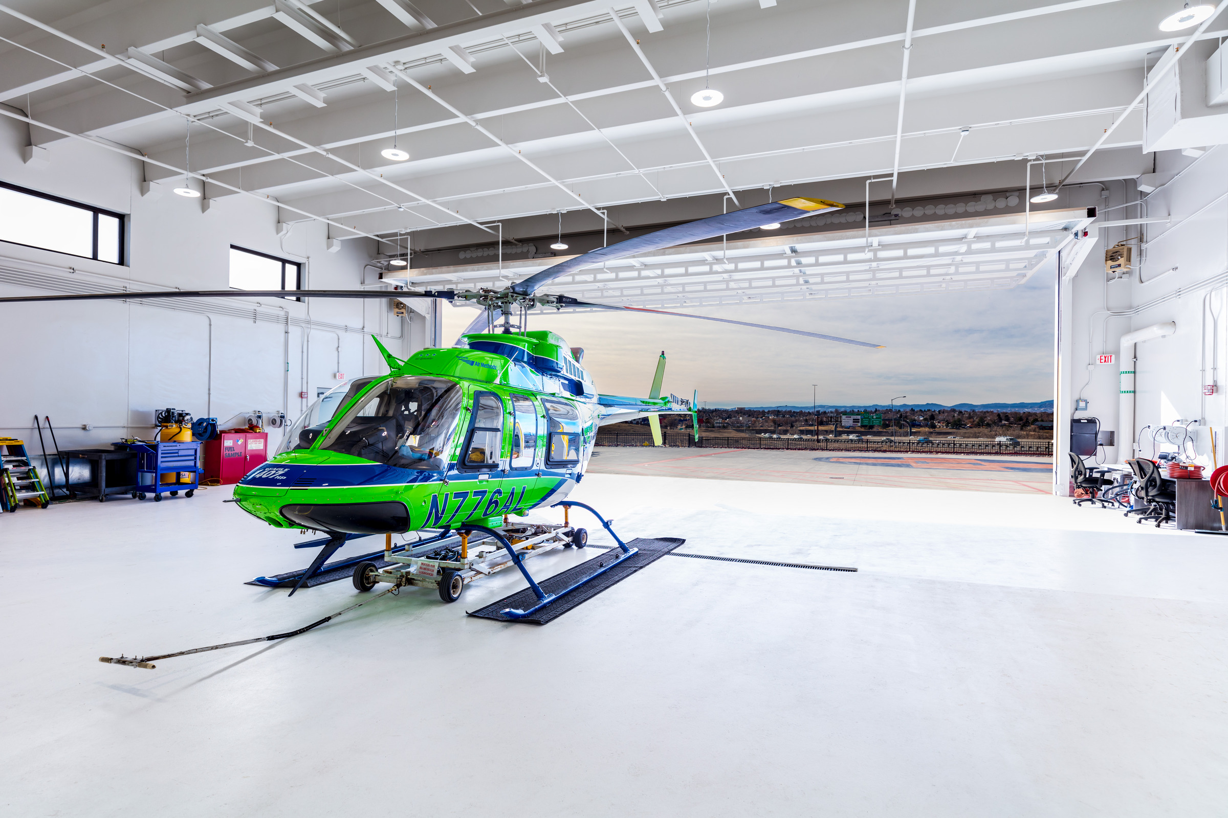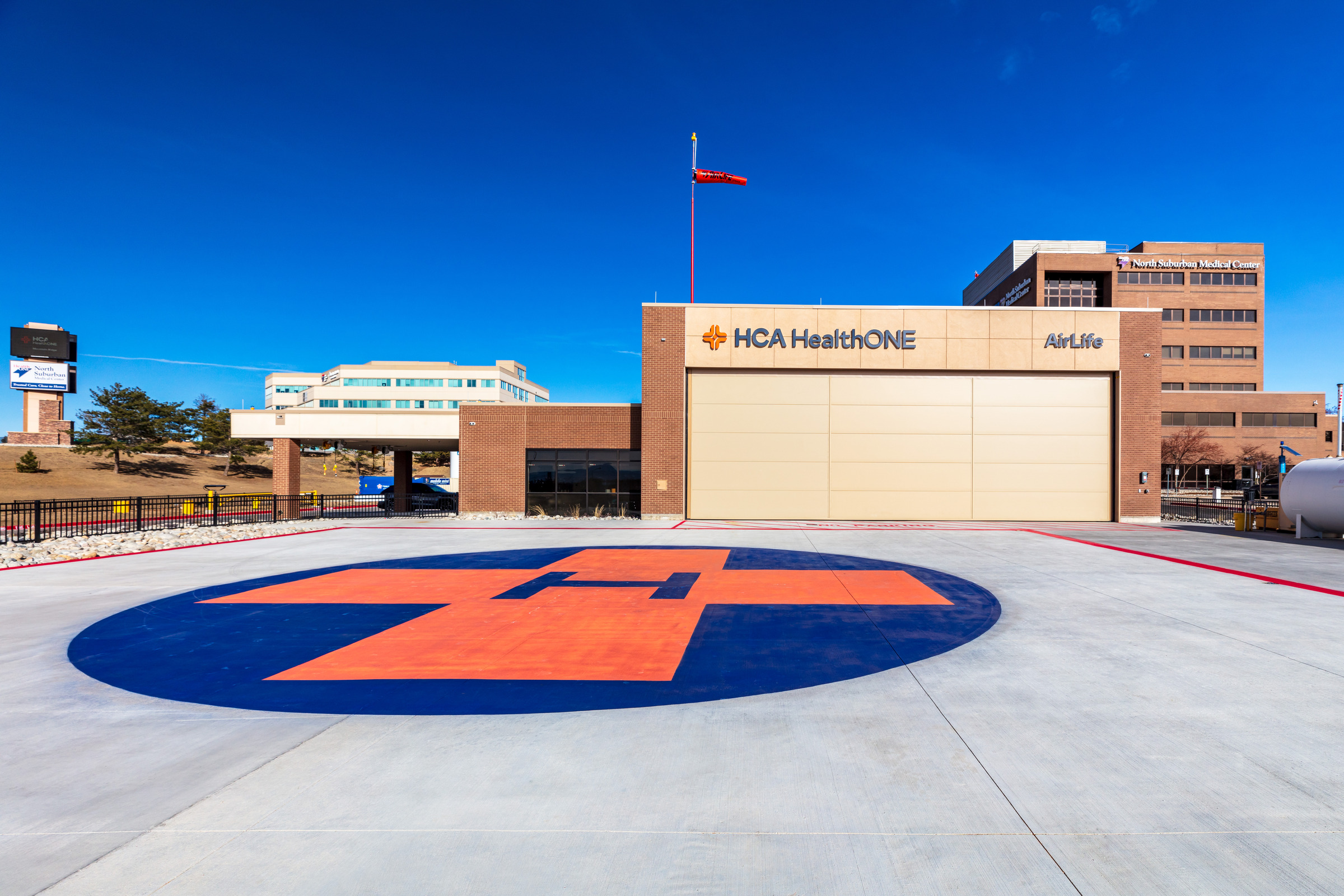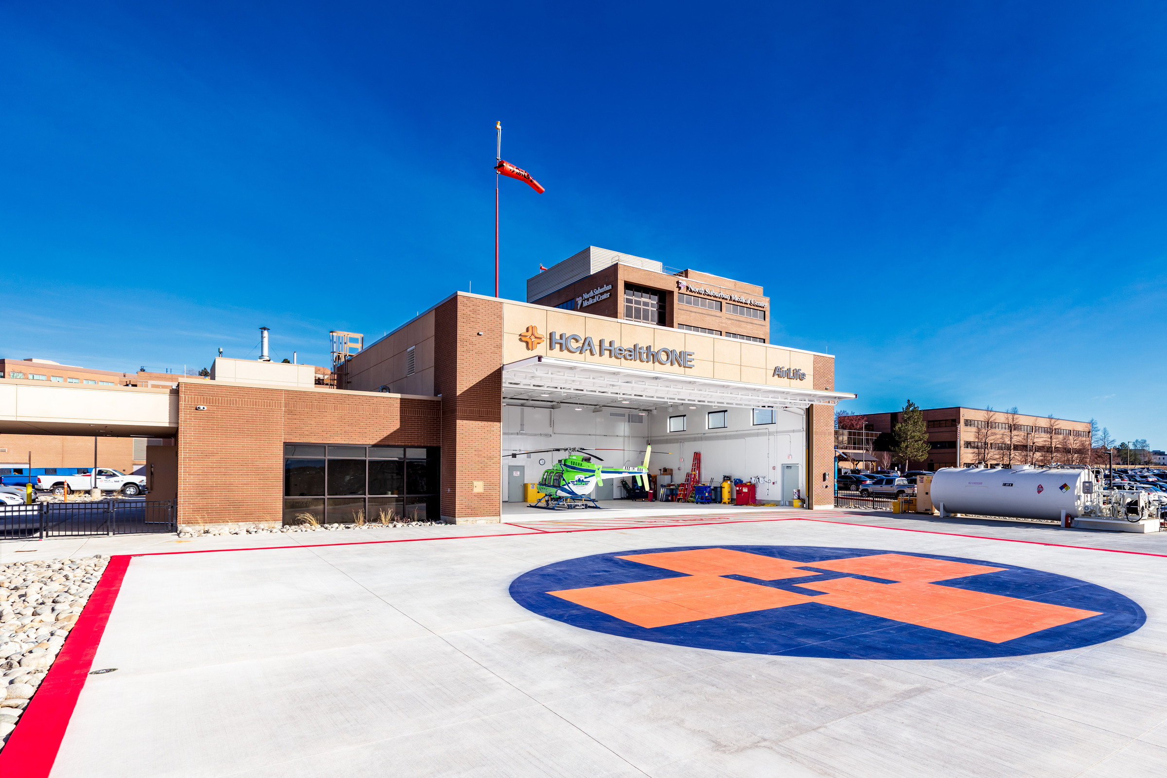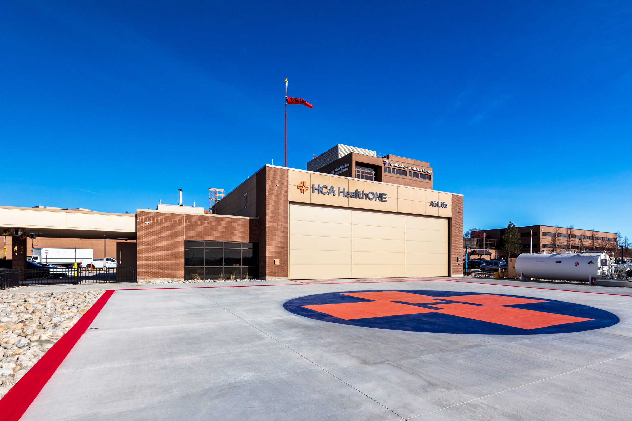 The North Suburban Medical Center Heliport is a thoughtfully designed, fully prefabricated space that combines functionality, efficiency, and architectural impact. A striking canopy at the entrance complements the surrounding campus, creating a welcoming and cohesive arrival point for patients, staff, and visitors.