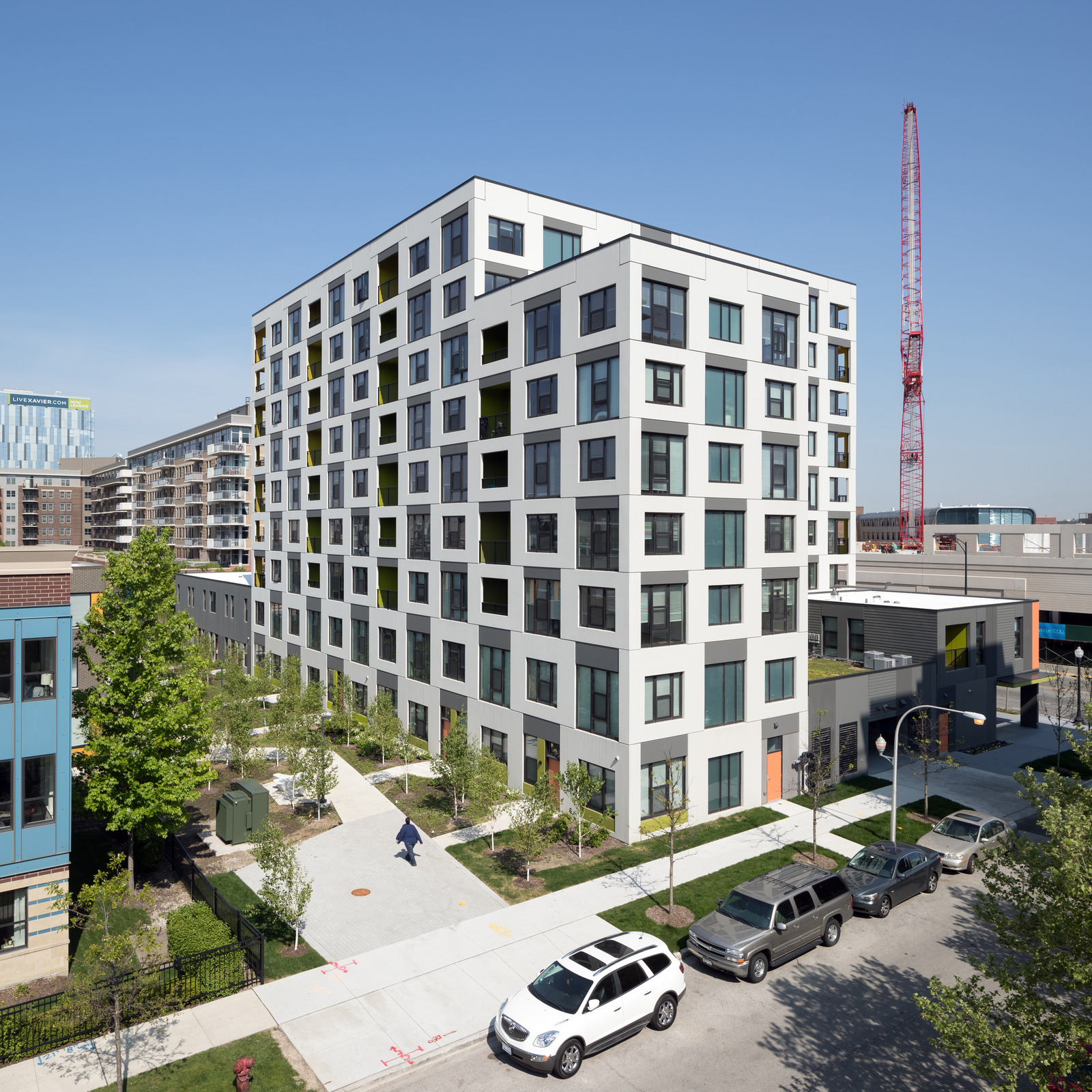 Located in Cabrini-Green, the heart of the Near North side of Chicago, sits Terrace 459, a Chicago Housing Authority (CHA) affordable housing development. The latest project in the area’s revitalization, the development adds more than one hundred rental units between two buildings. Terrace 459 provides dramatic downtown and city views with reasonable rates for one- or two-bedroom units.