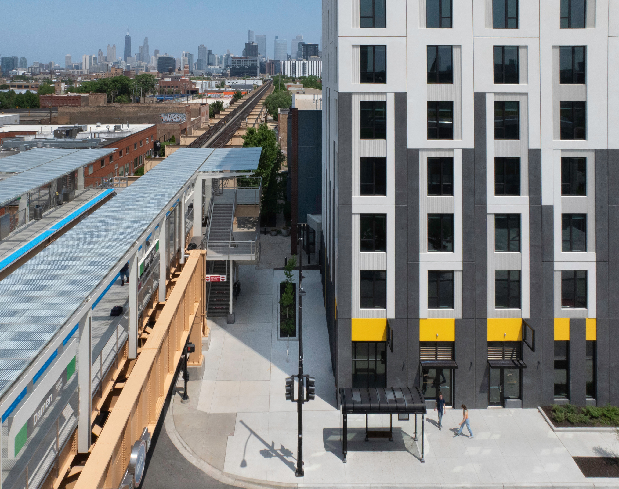 Westhaven Park Station is a 12-story, 96-unit affordable housing development located just north of the United Center on Chicago's West Side. The development is the final phase of the multi-phase redevelopment of the former Henry Horner Homes. Westhaven Park Station includes ground-floor retail space and covered parking on the first floor, and a second-floor terrace above the lobby offers residents an outdoor space to enjoy. This development is considered an Equitable Transit-Oriented Development (ETOD), as it is adjacent to the CTA Damen Green Line station that opened in Summer 2024, providing access to public transportation and boosting neighborhood connectivity.