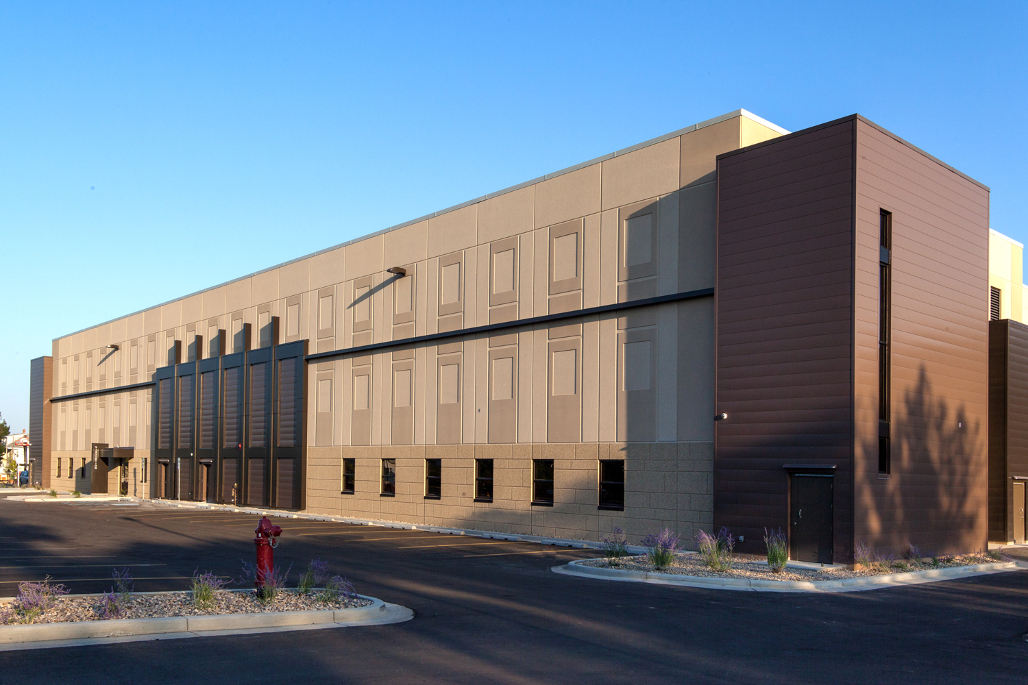 Wells provided building solutions for the jail addition, which included the building envelope and roof. Manufactured in an off-site controlled environment, the prefabricated building system provides durability, efficient construction, and structural integrity vital for a facility of this nature. The combination acid etch, sandblast, and water wash finish not only ensures a visually appealing aesthetic but also enhances the resilience of the materials against environmental factors and overall wear, further contributing to the longevity and functionality of the expanded jail. Wells supported Williams County Jail in successfully meeting the evolving needs of its community while providing a stunning facility that complements the community.