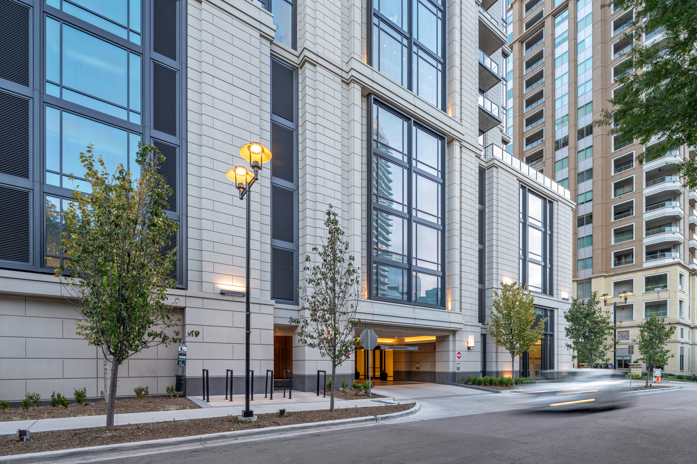 In nearby uptown Dallas, Maple Terrace Residences rises 22 stories and features architectural precast panels in various stacked stone patterns with a warm, neutral color palette. We helped create a façade that balances modern and classic aesthetics, featuring a striking charcoal hue at the base that transitions to a lighter gray as the structure climbs.